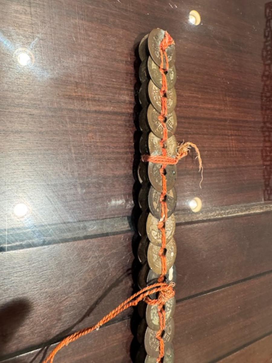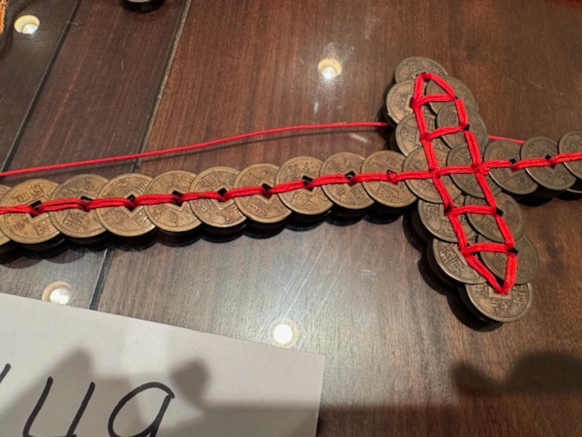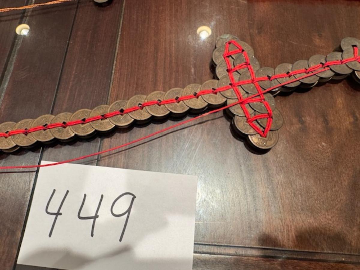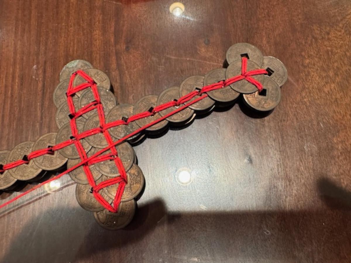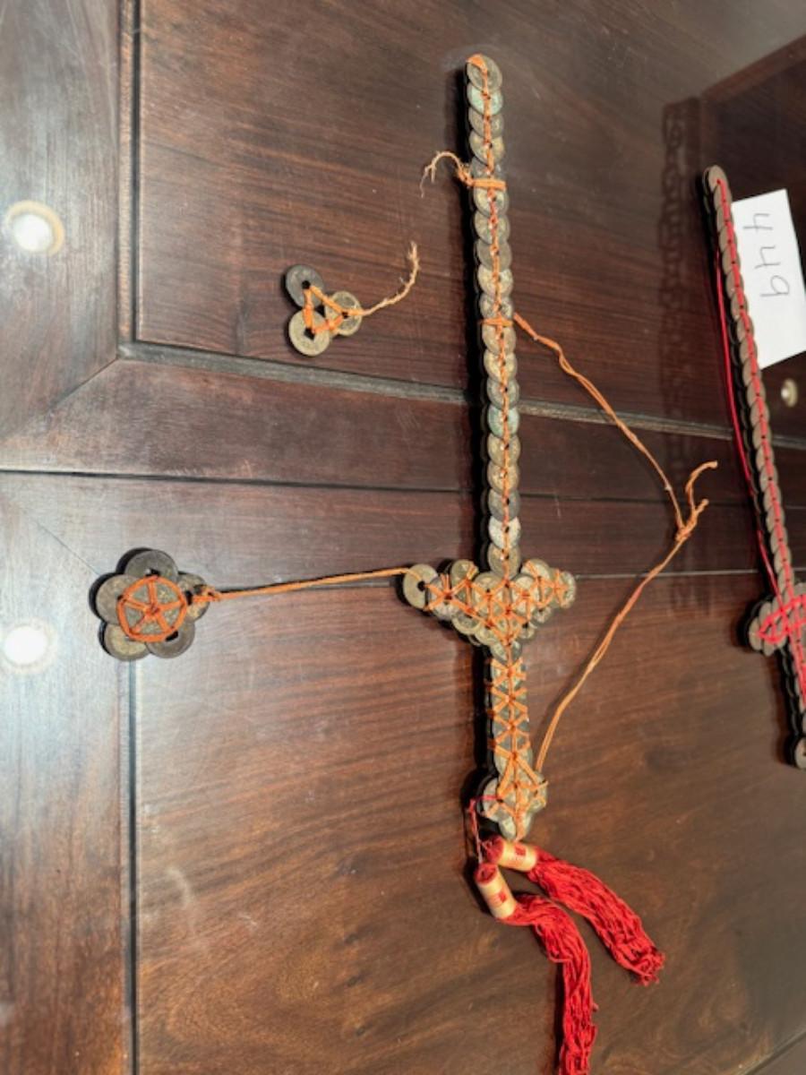The coin sword is a Chinese coin amulet, a Feng Shui amulet to ward off evil spirits and Yin energy.