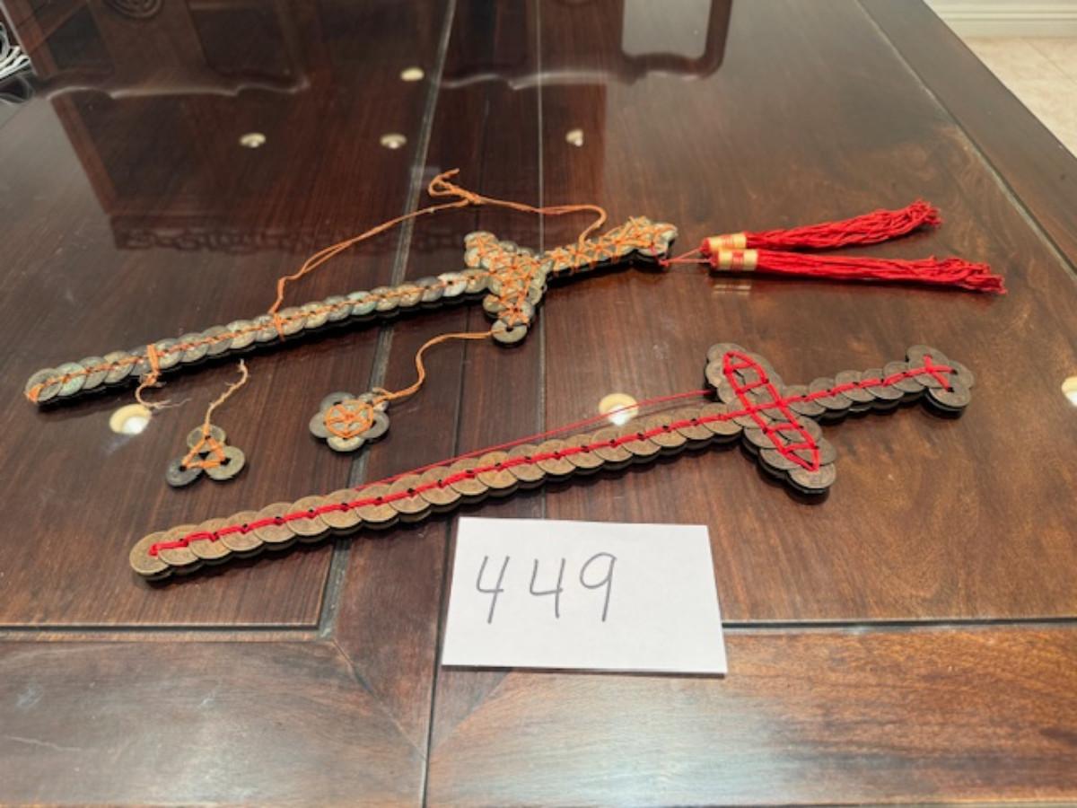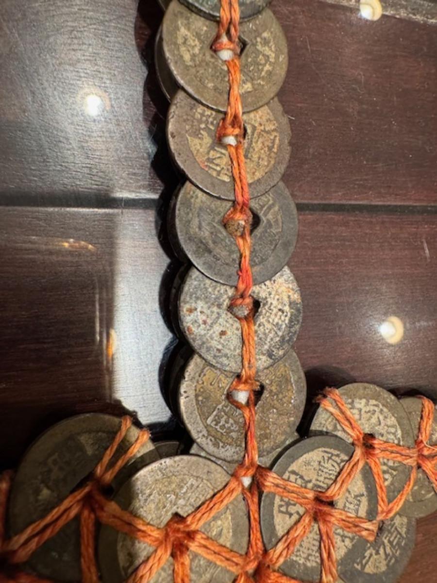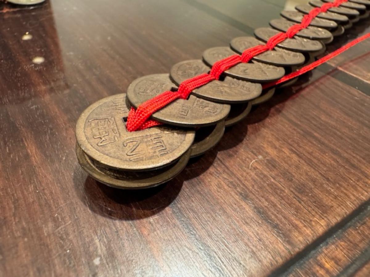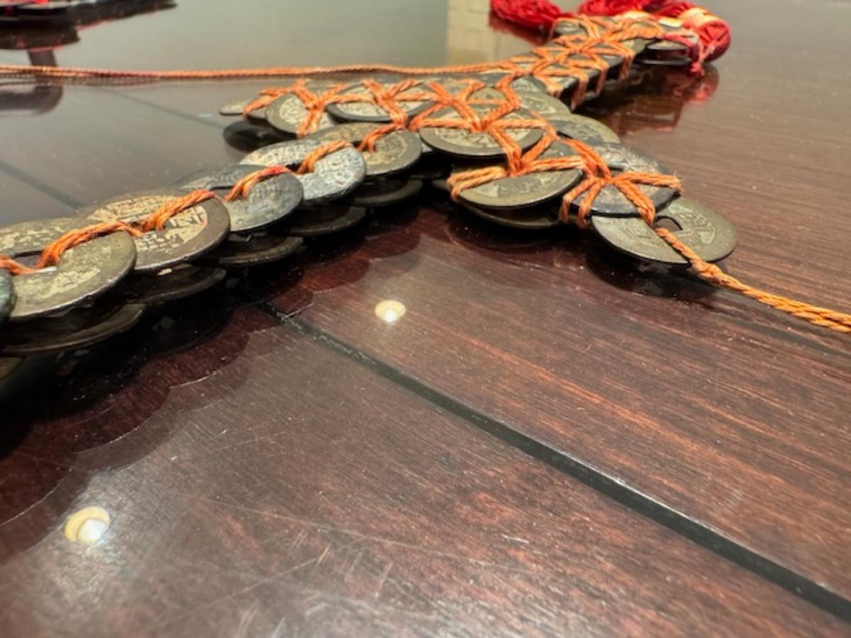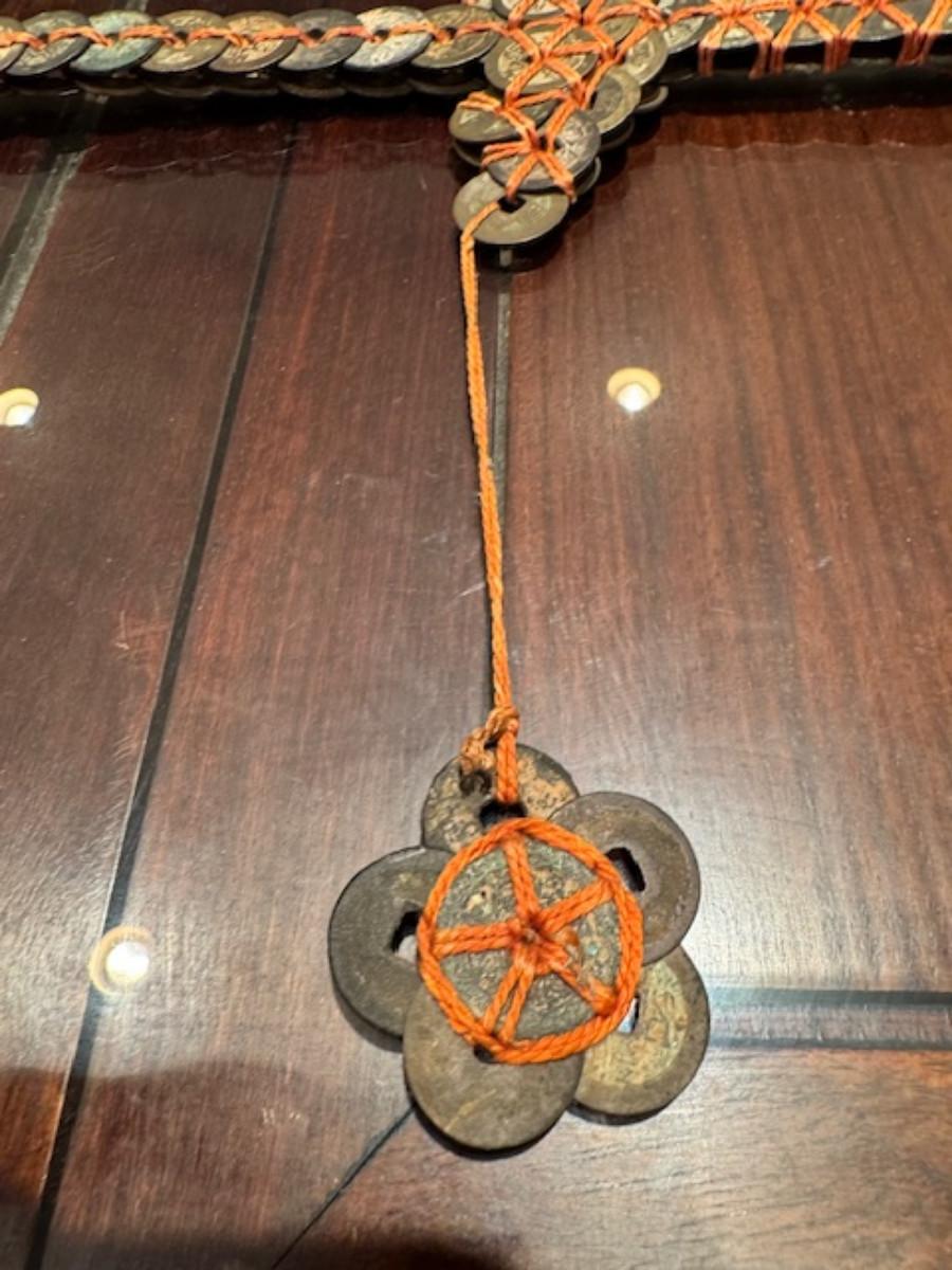 The coin sword is a Chinese coin amulet, a Feng Shui amulet to ward off evil spirits and Yin energy.