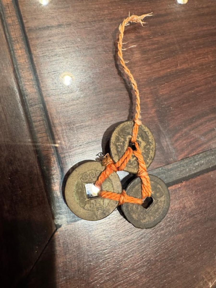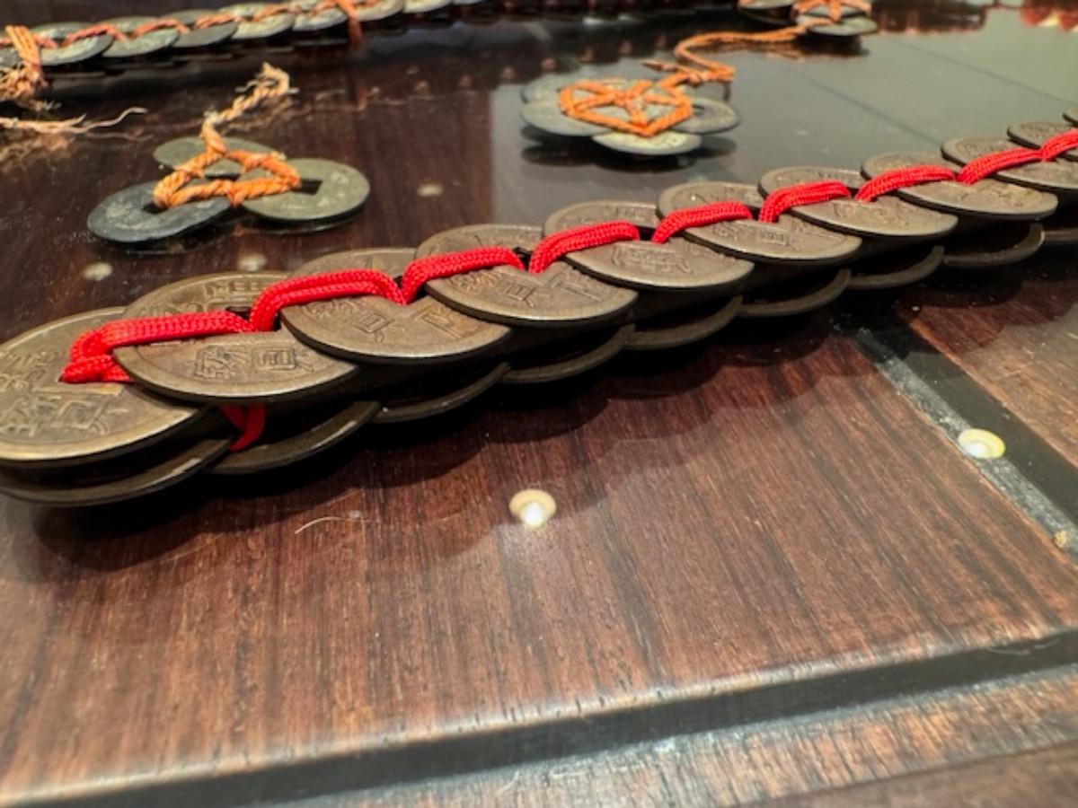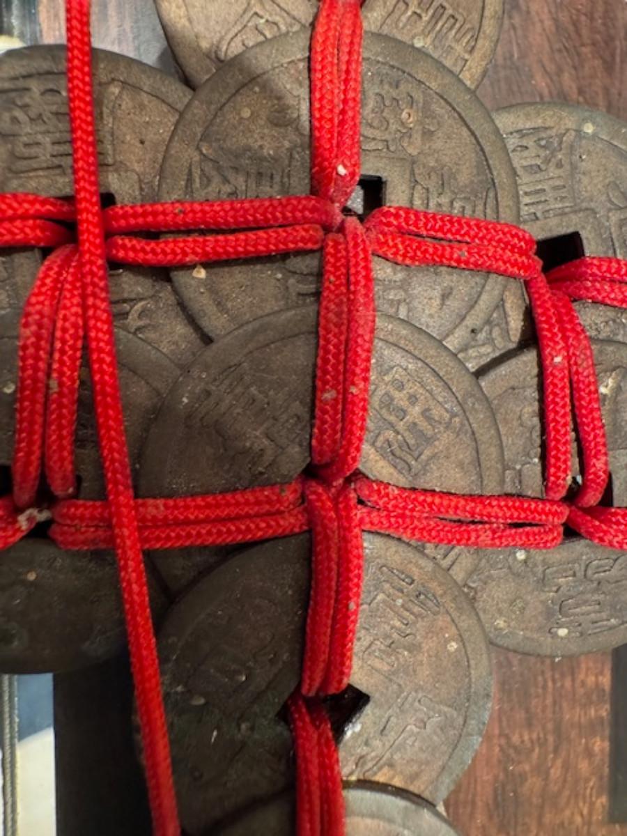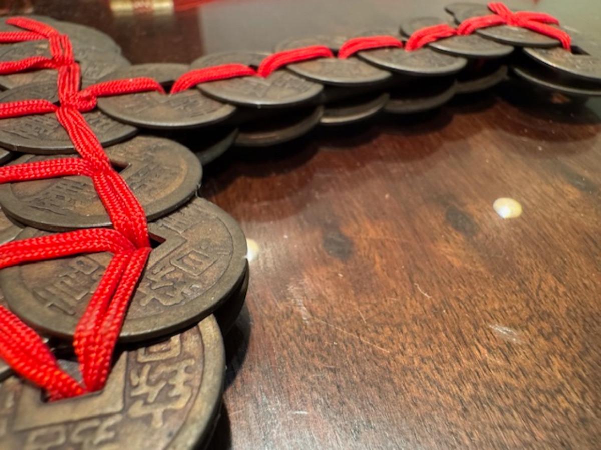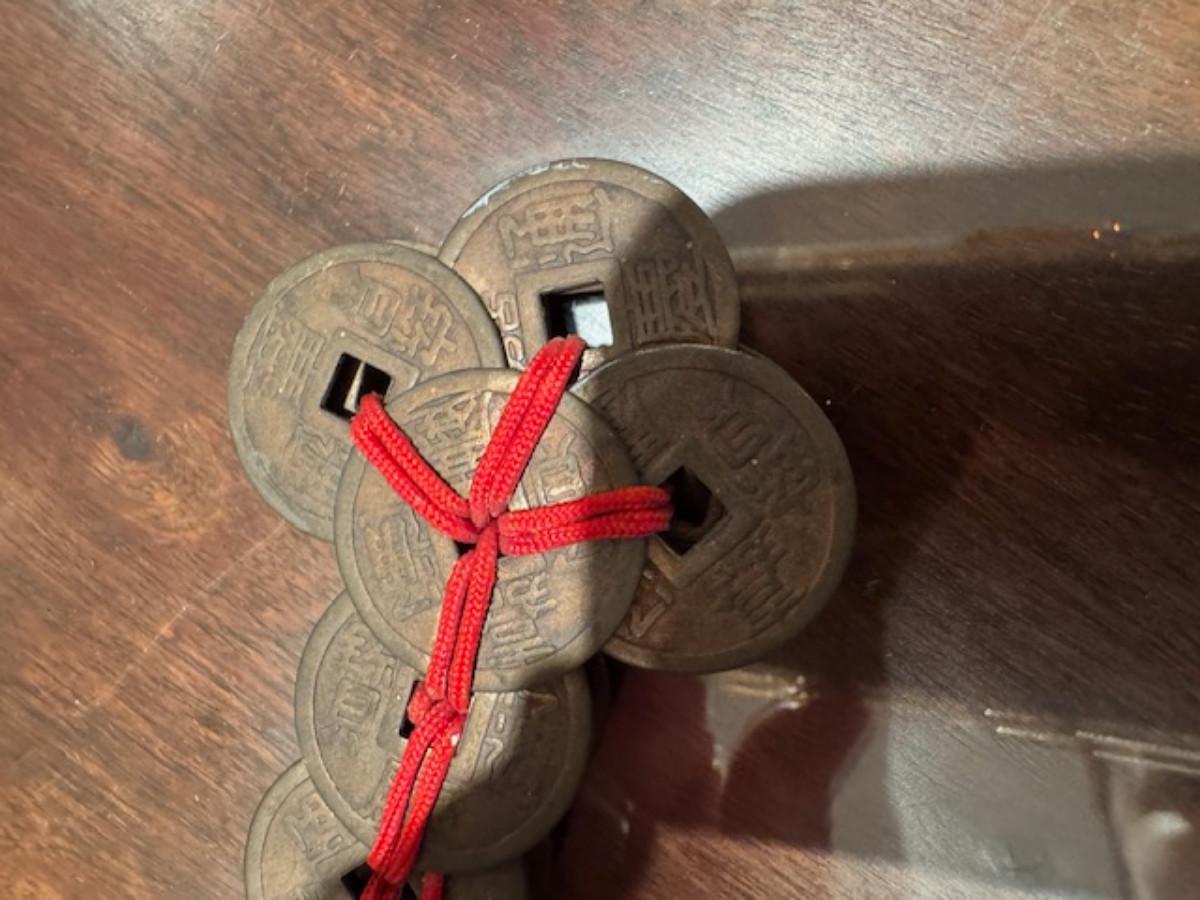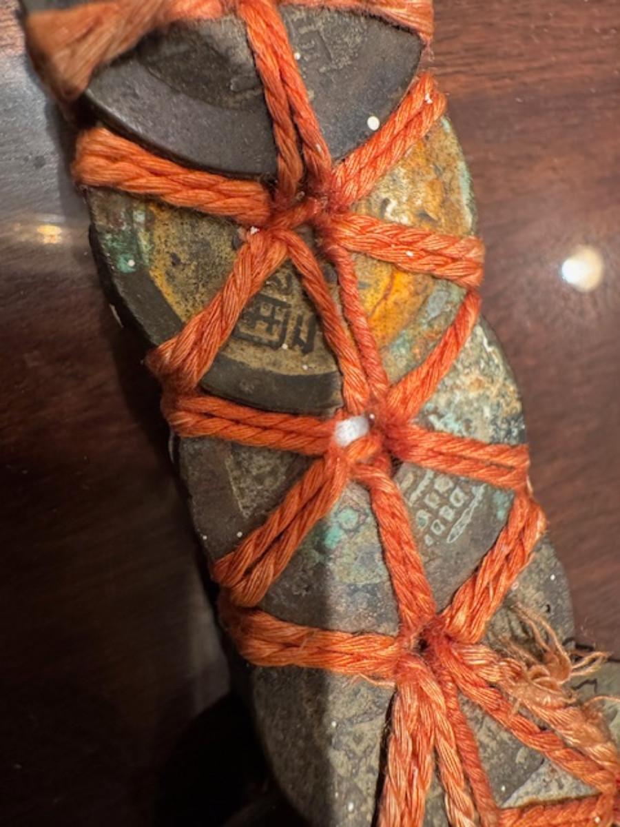 The coin sword is a Chinese coin amulet, a Feng Shui amulet to ward off evil spirits and Yin energy.