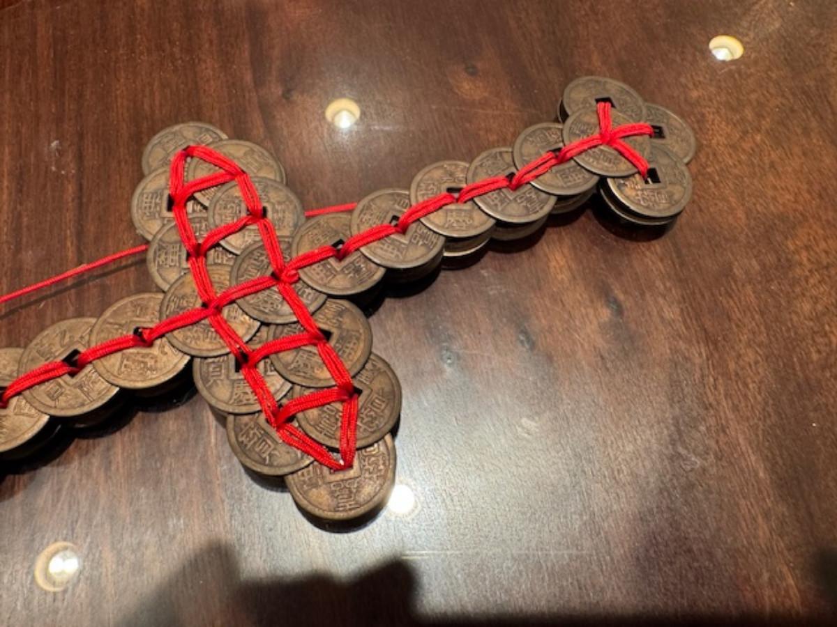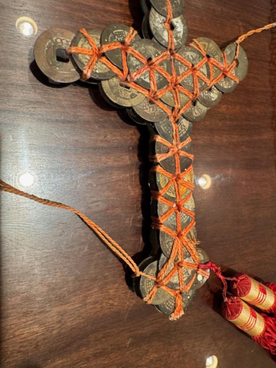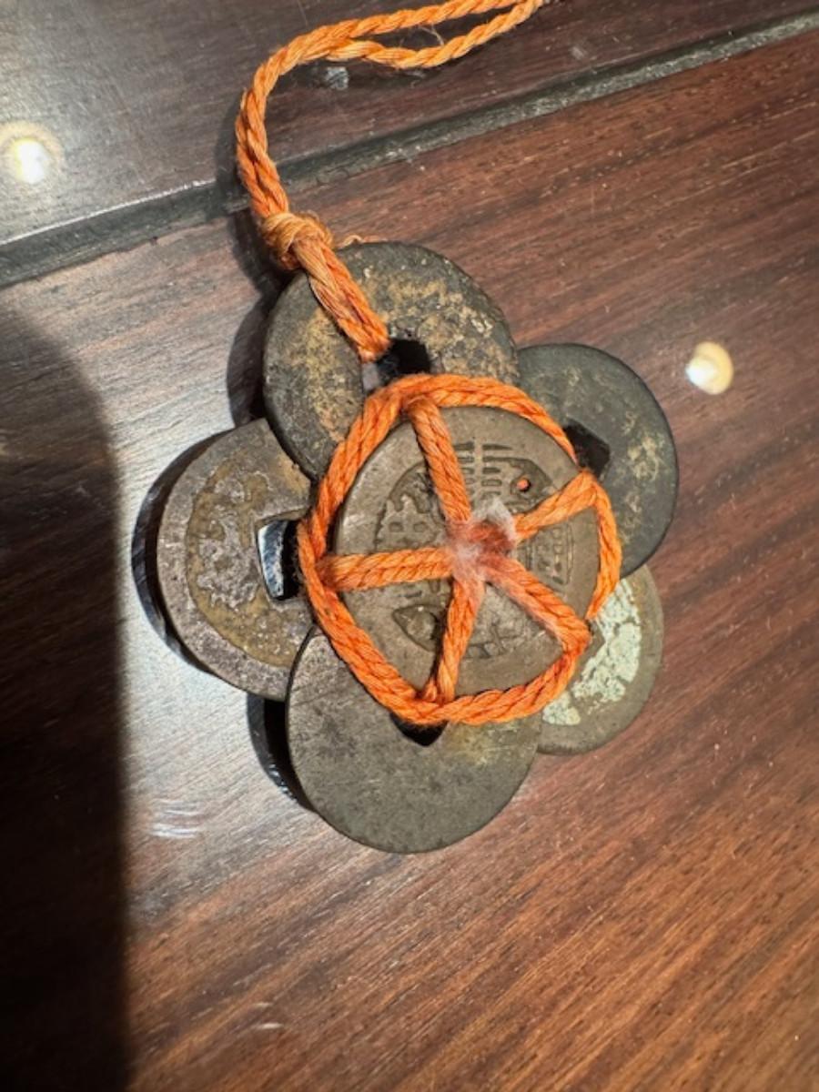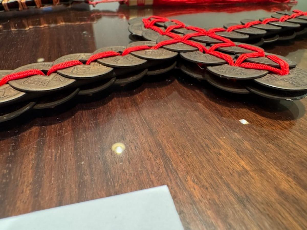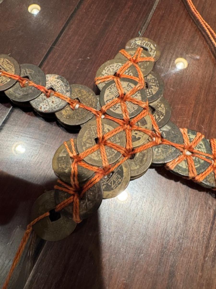 The coin sword is a Chinese coin amulet, a Feng Shui amulet to ward off evil spirits and Yin energy.