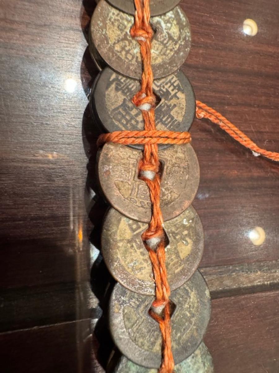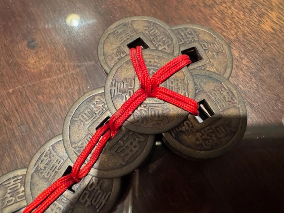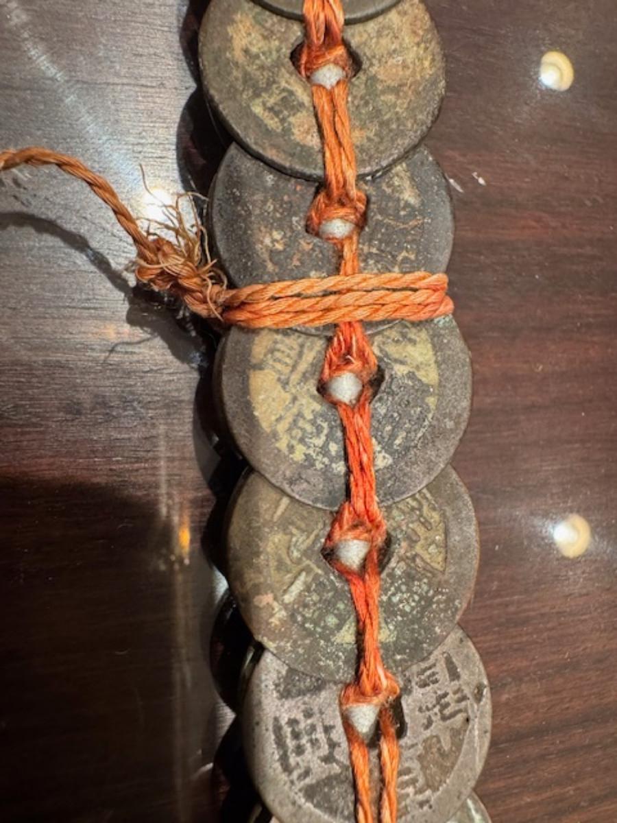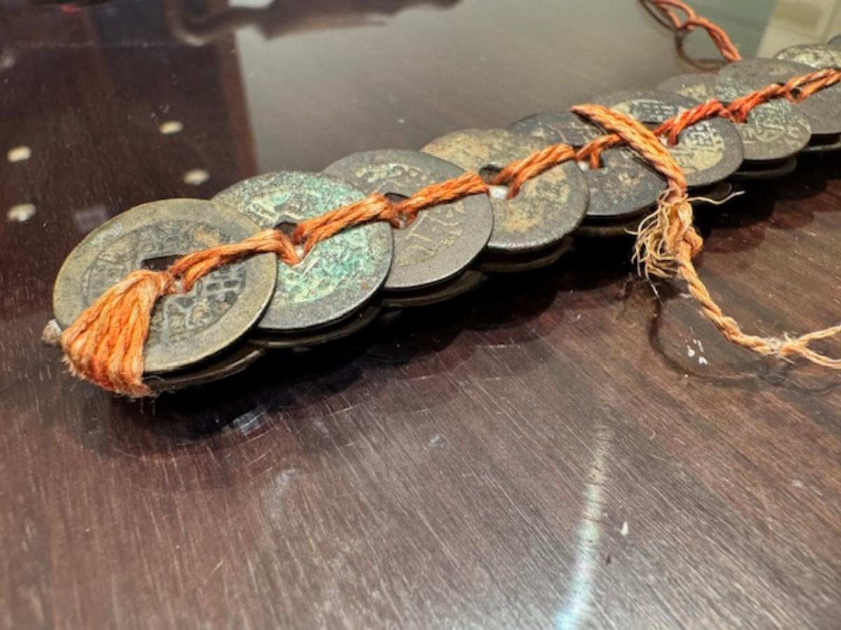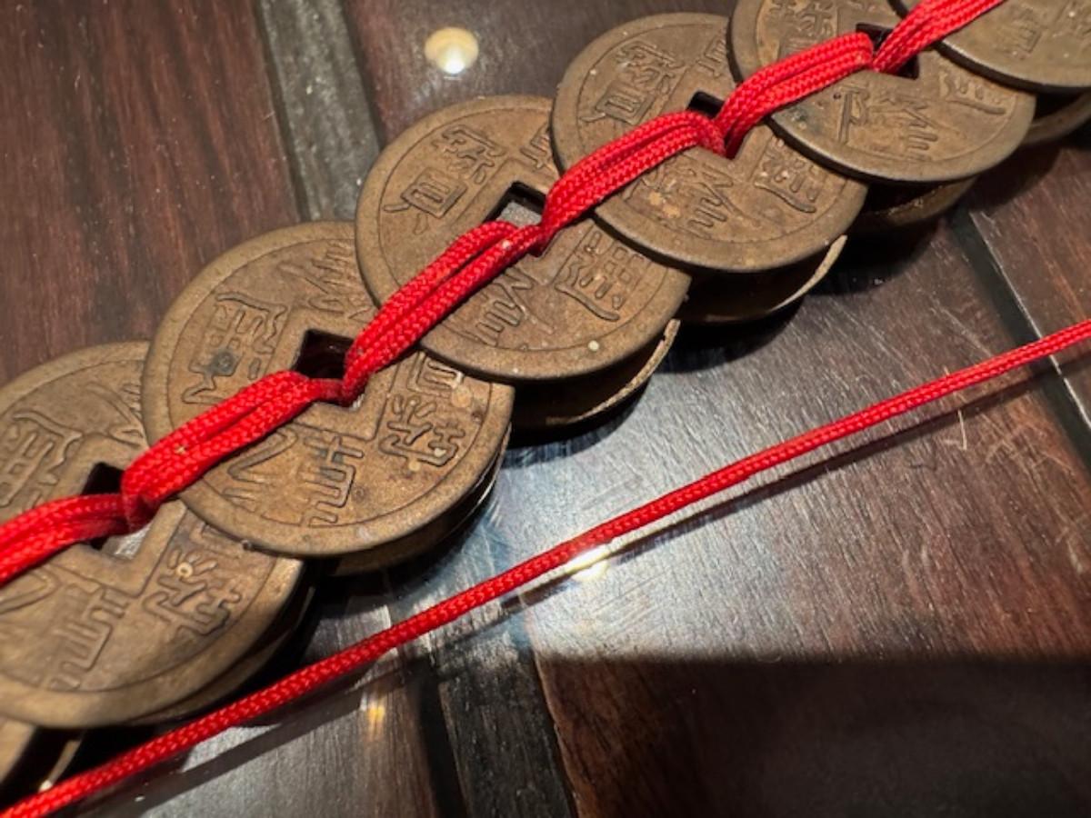 The coin sword is a Chinese coin amulet, a Feng Shui amulet to ward off evil spirits and Yin energy.