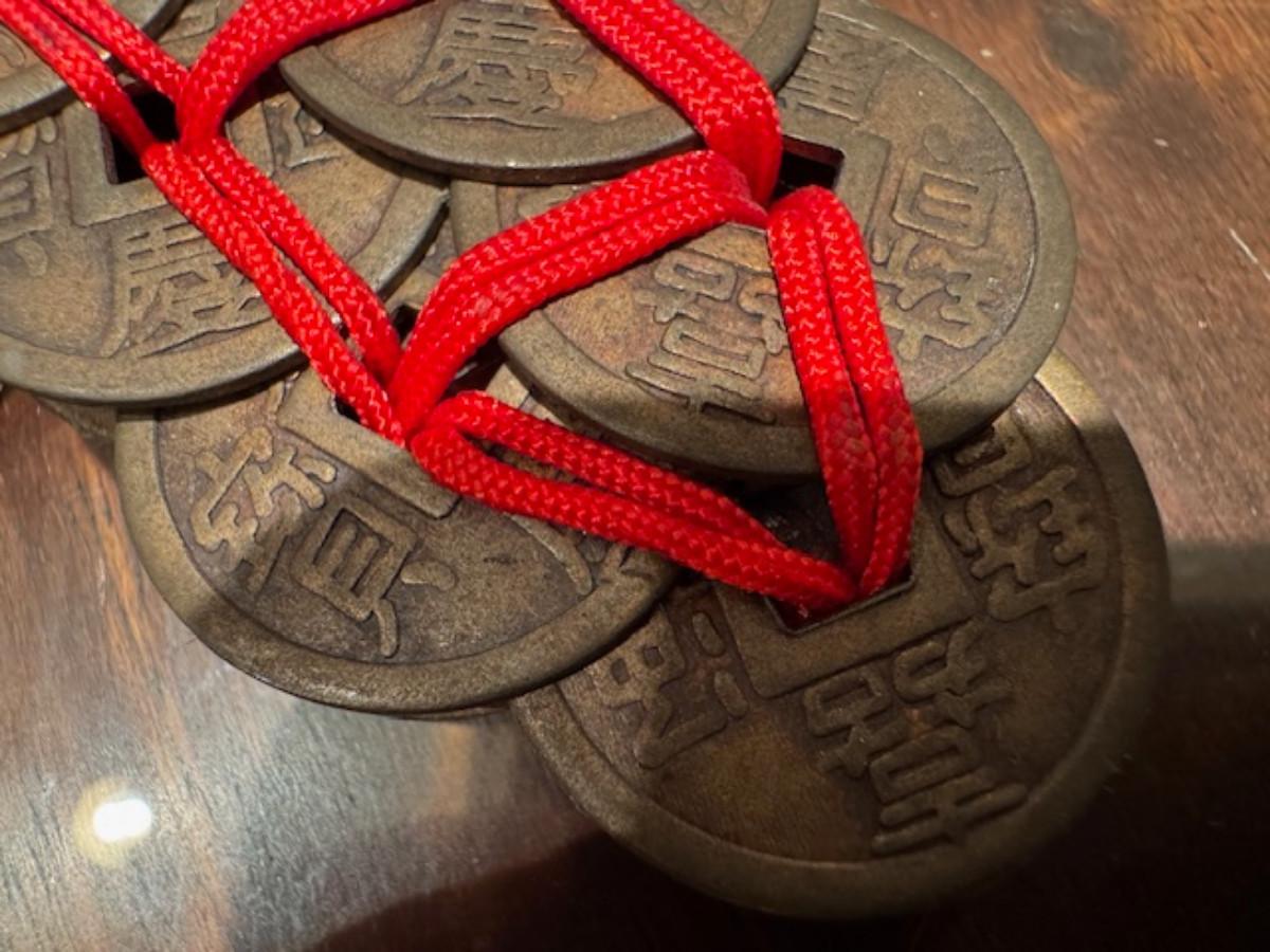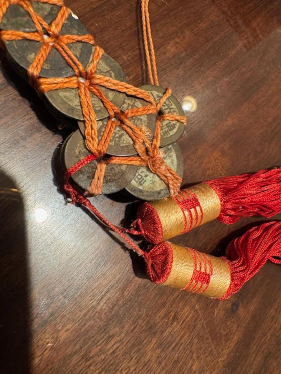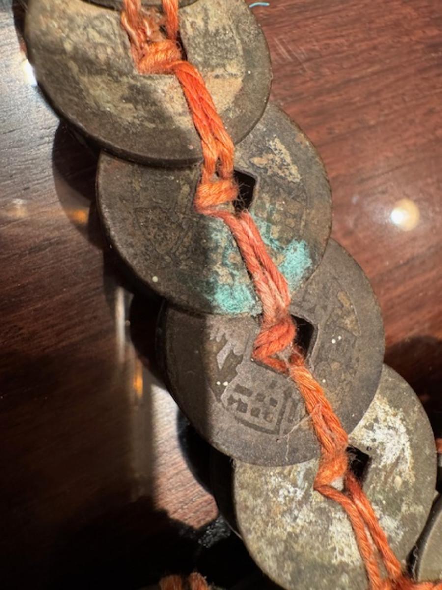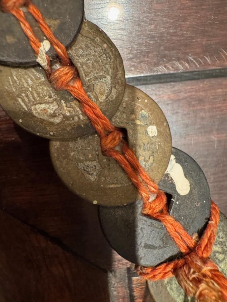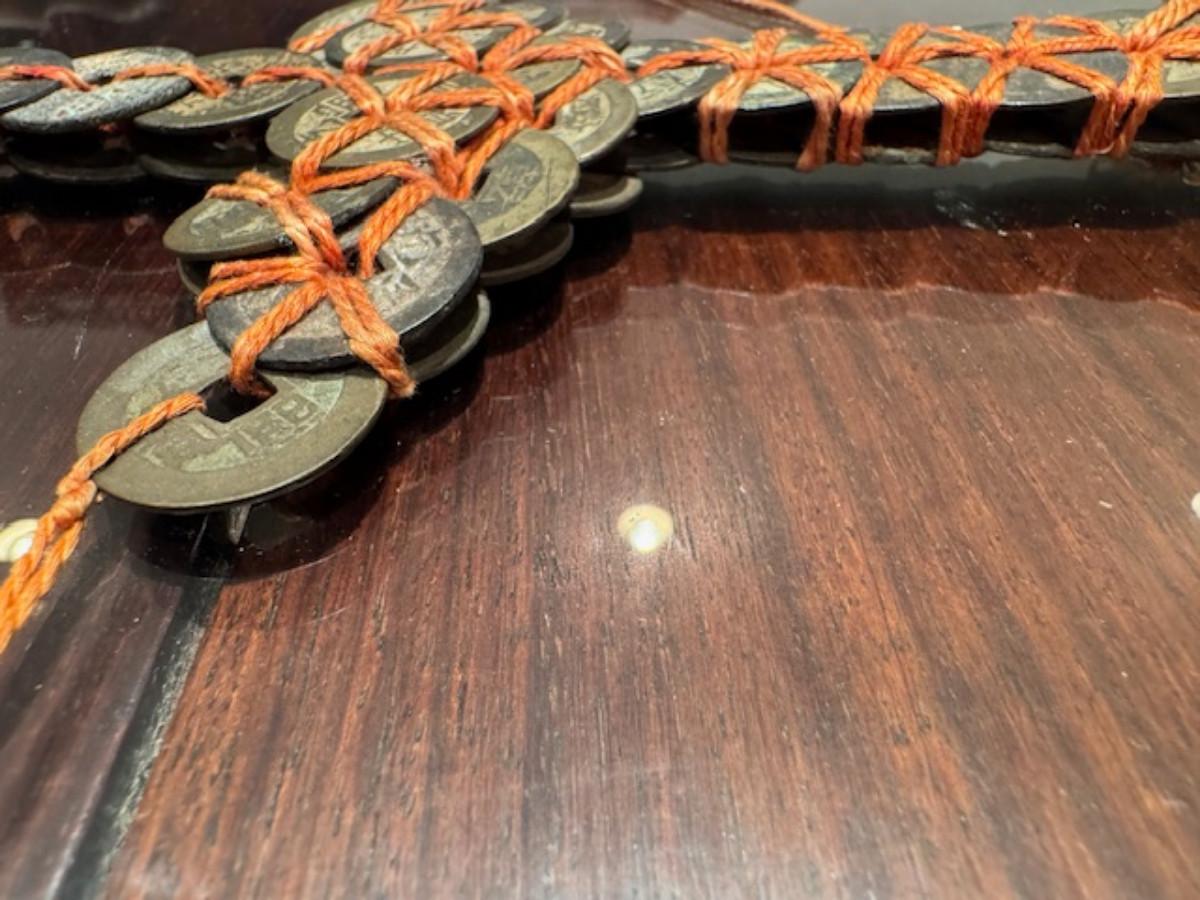 The coin sword is a Chinese coin amulet, a Feng Shui amulet to ward off evil spirits and Yin energy.