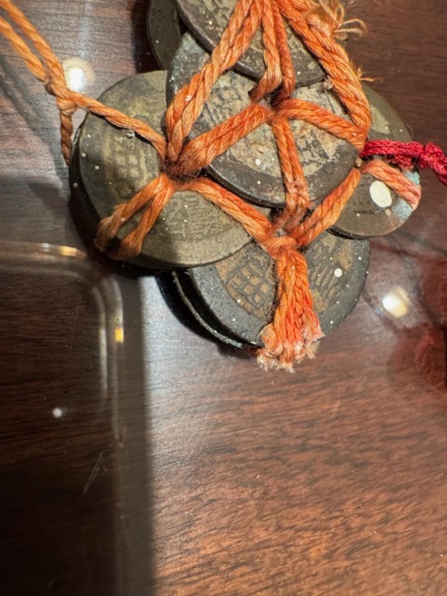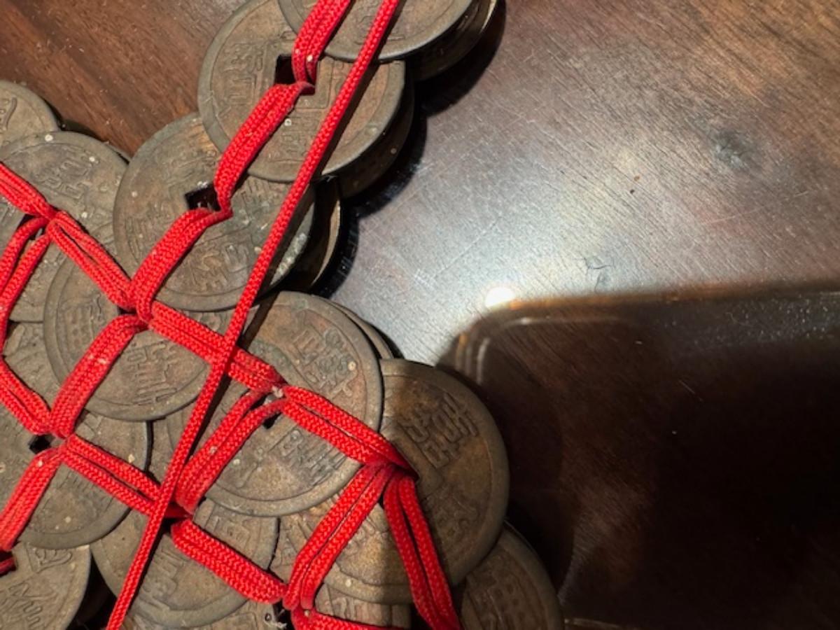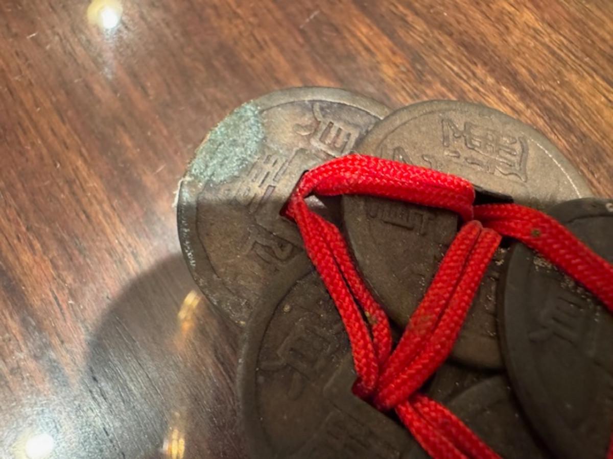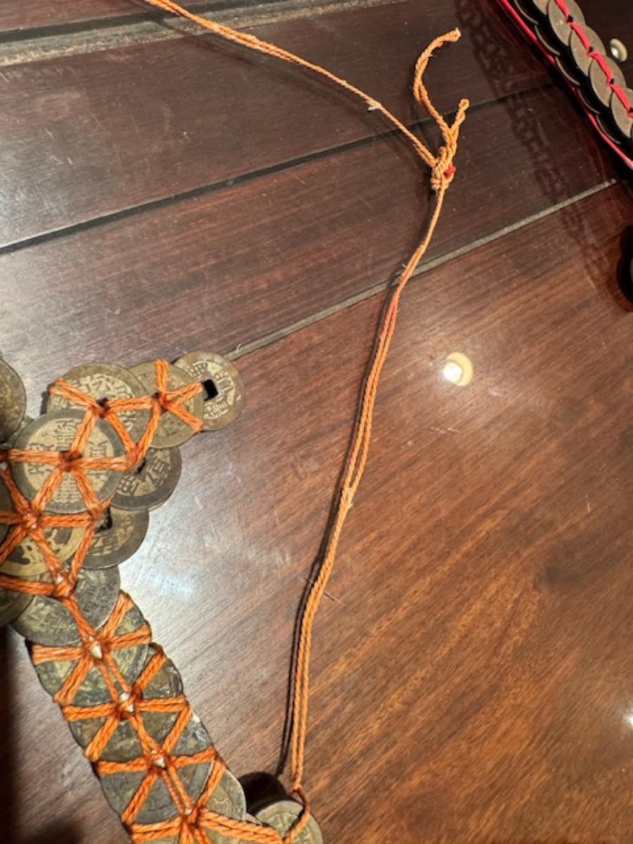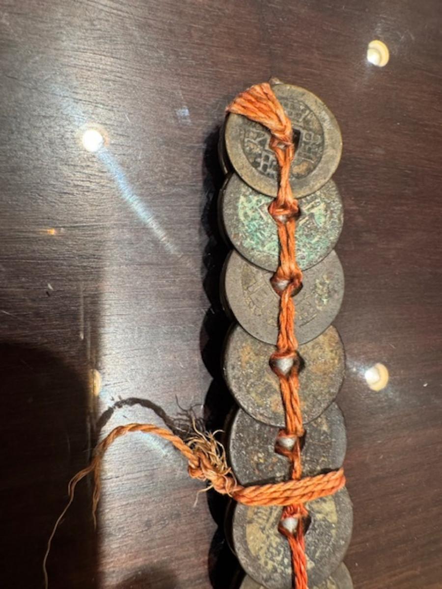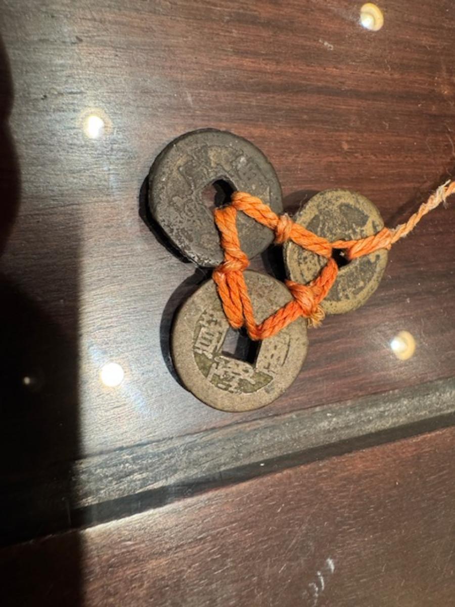 The coin sword is a Chinese coin amulet, a Feng Shui amulet to ward off evil spirits and Yin energy.