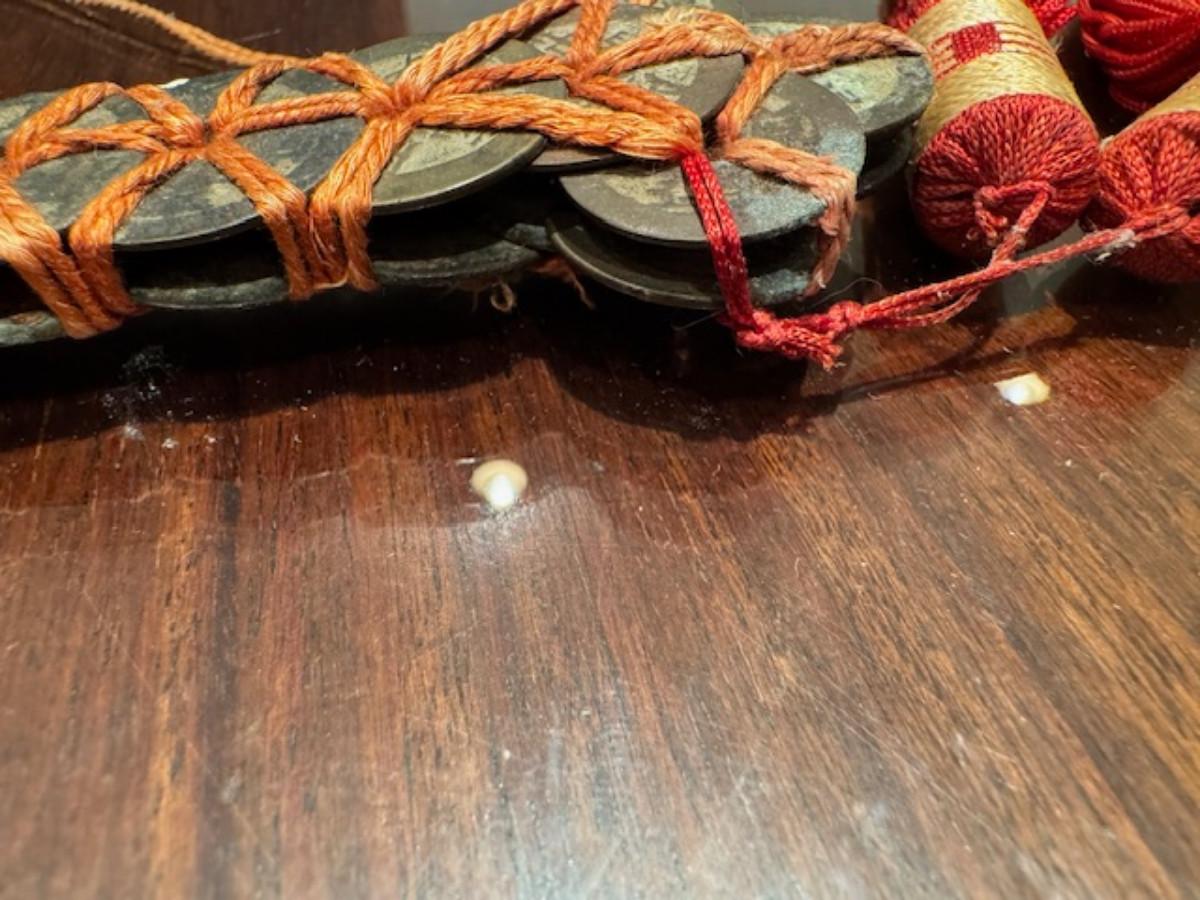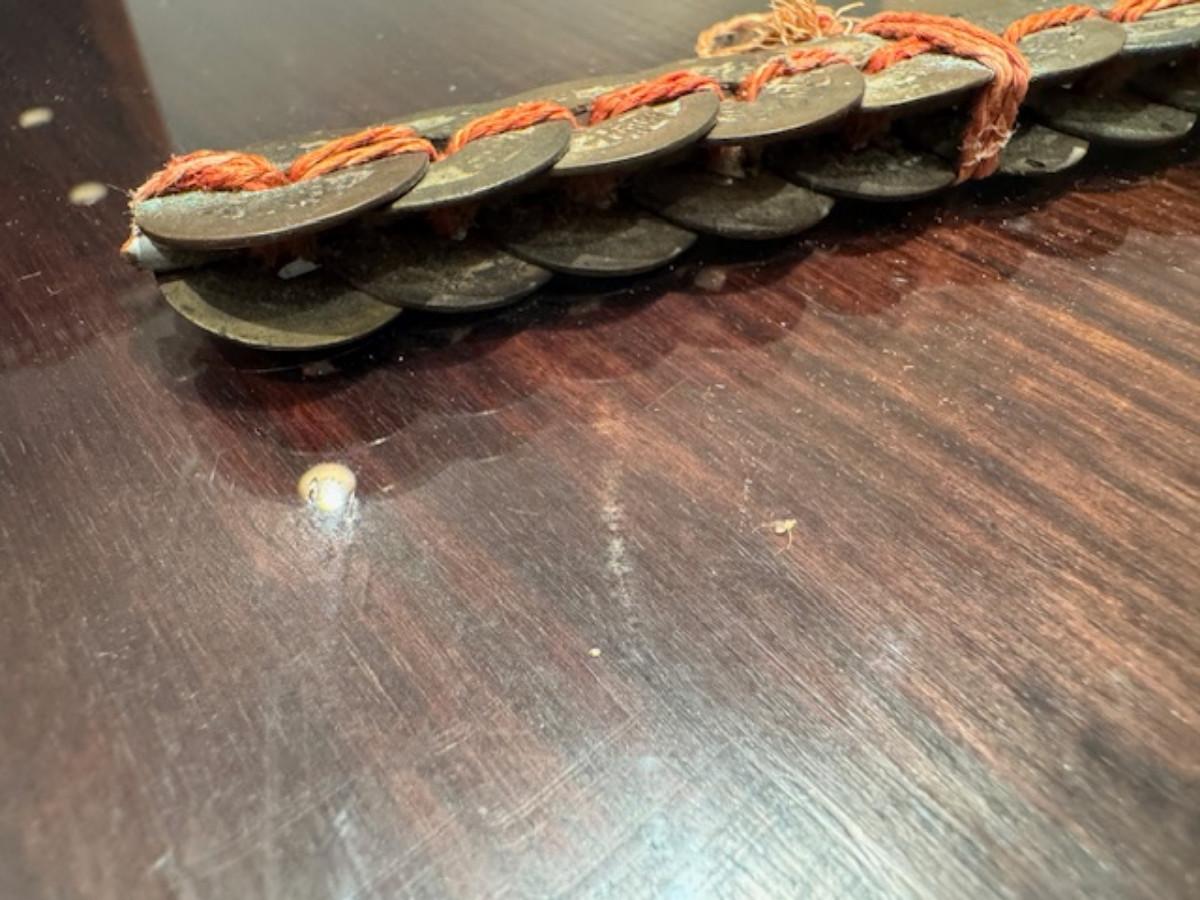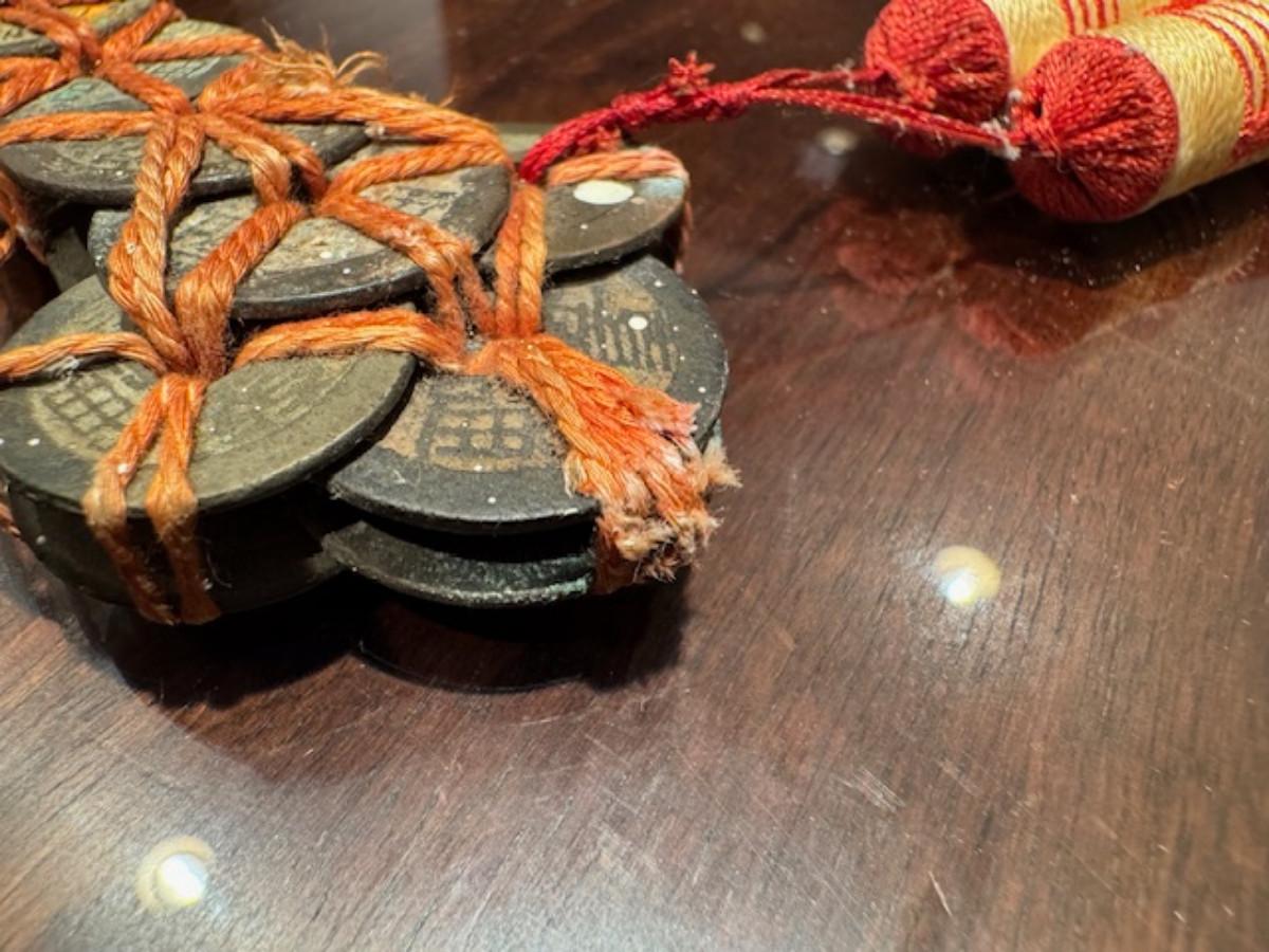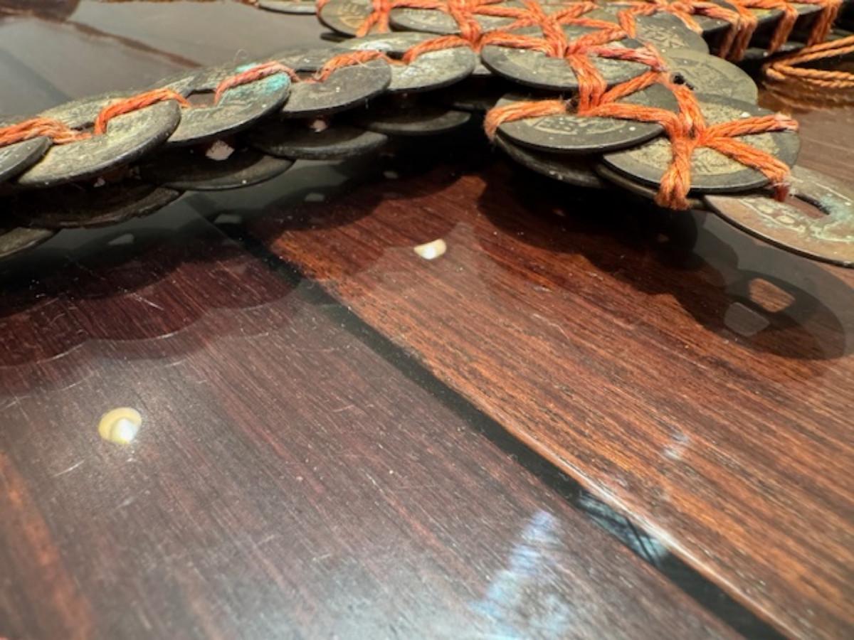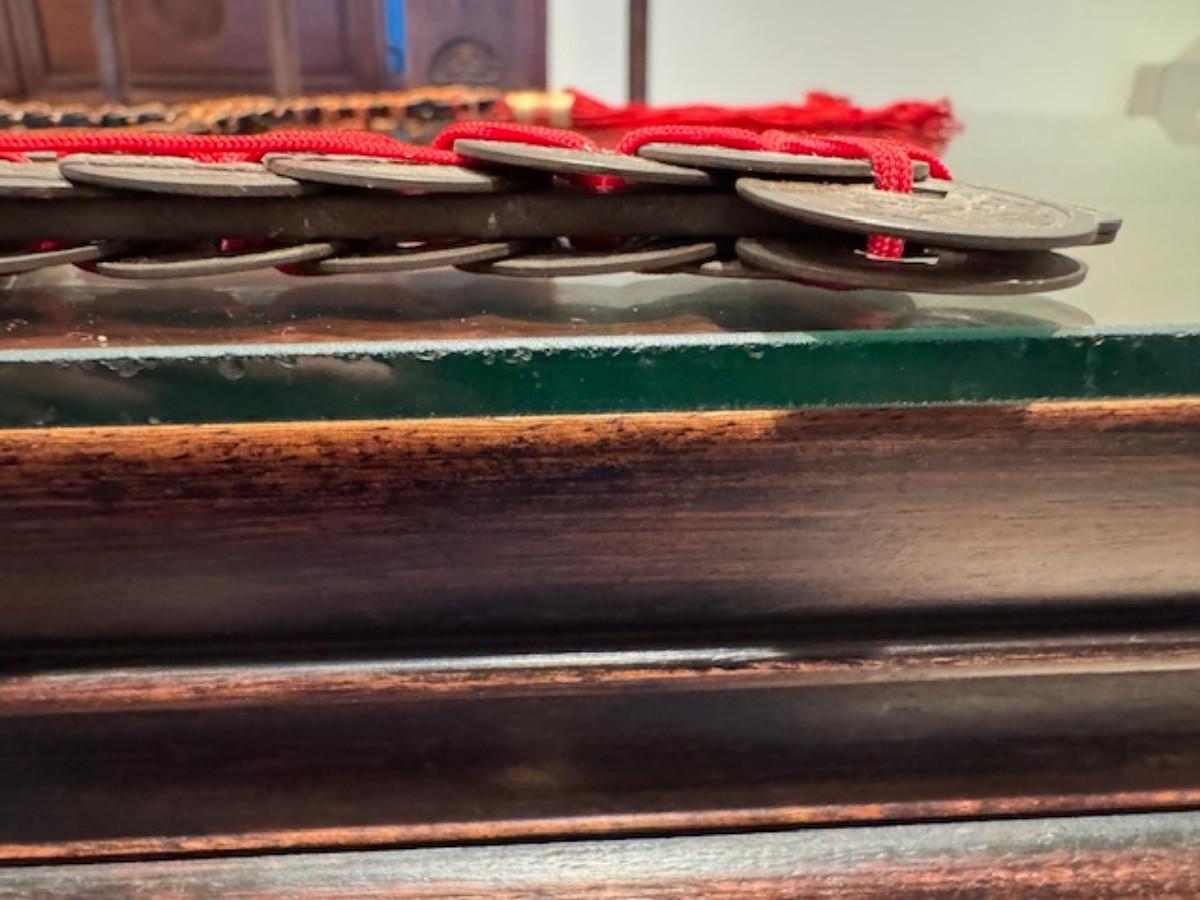 The coin sword is a Chinese coin amulet, a Feng Shui amulet to ward off evil spirits and Yin energy.