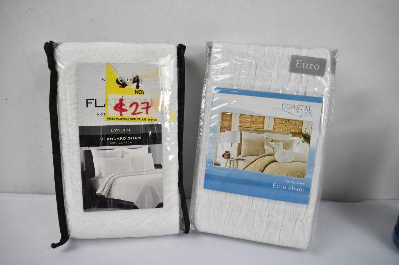 2 Coordinating Pillow Shams White/Off White. 1 Standard Size, 1 Euro Size - New