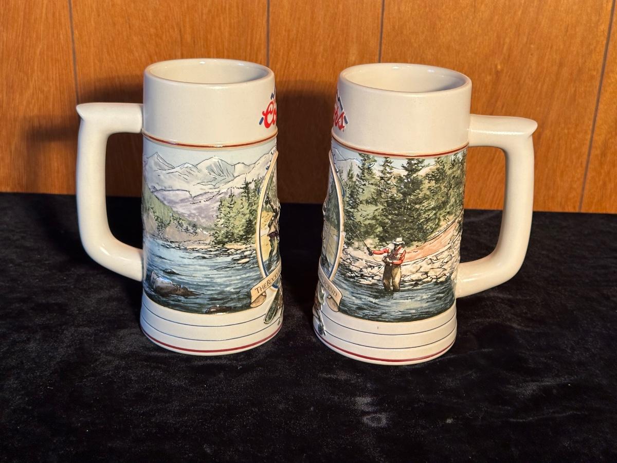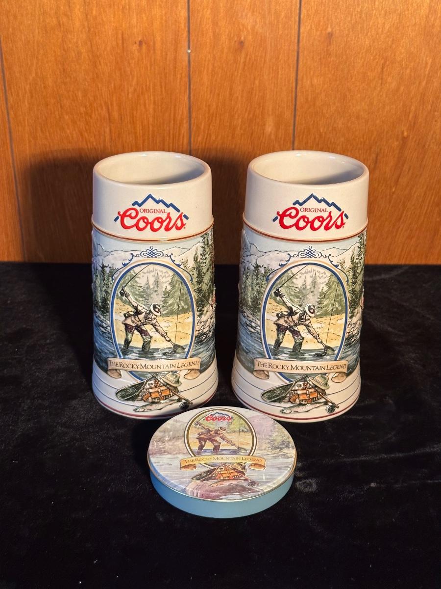 2 COORS BEER STEINS AND COASTERS