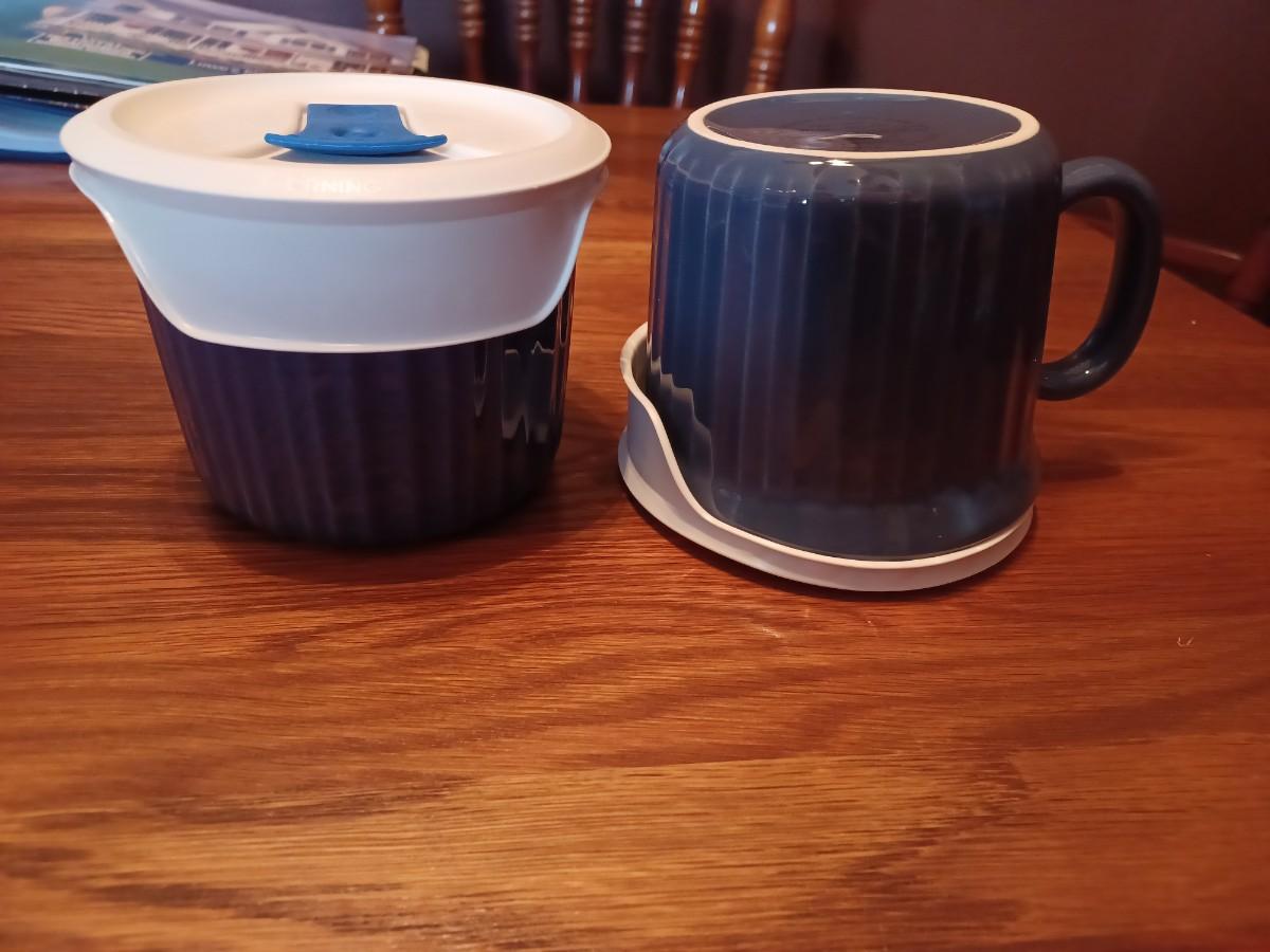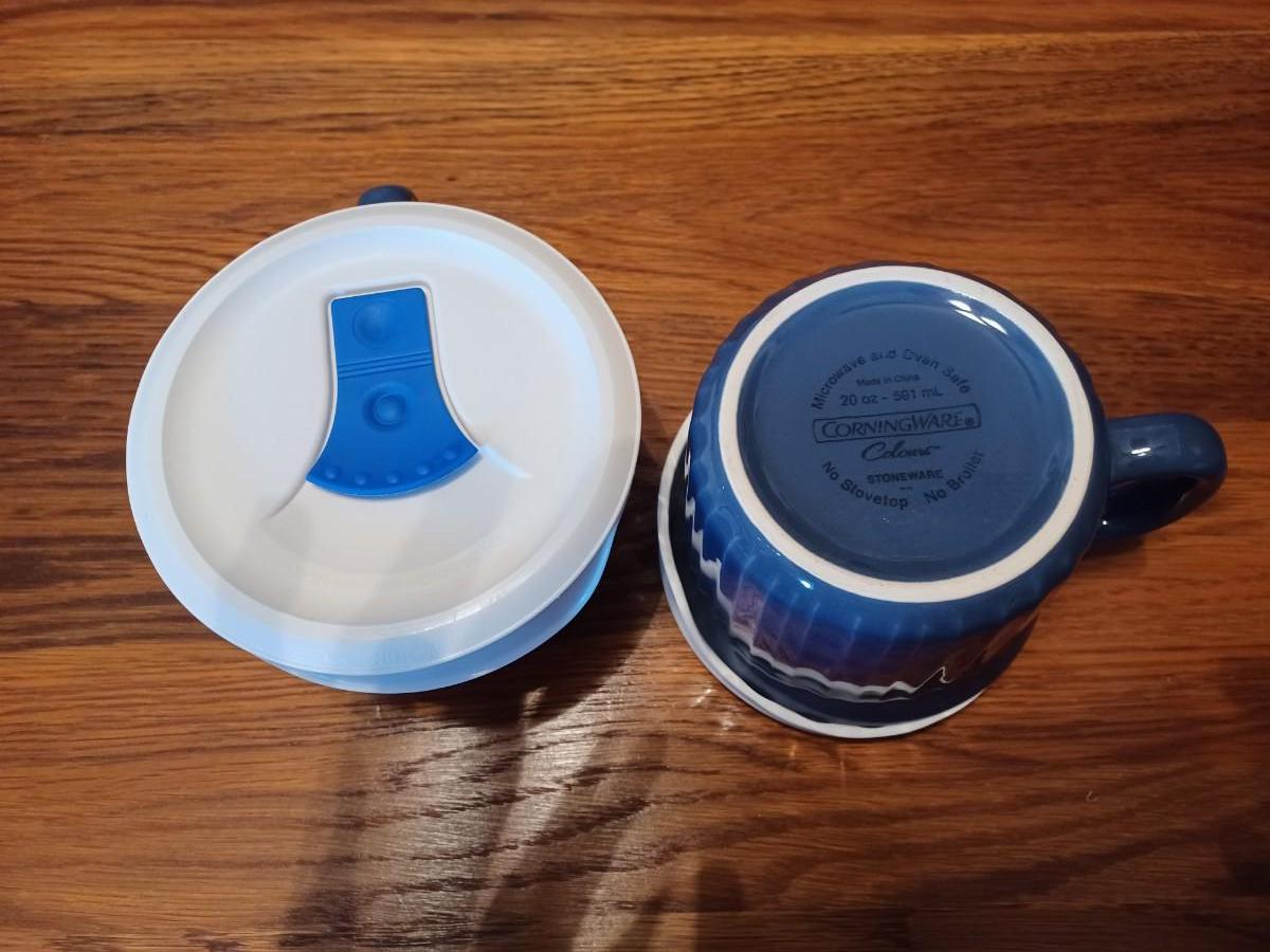 2 CorningWare COLOURS Stoneware 20oz SOUP/MEAL MUG with VENTED LID Cobalt Blue