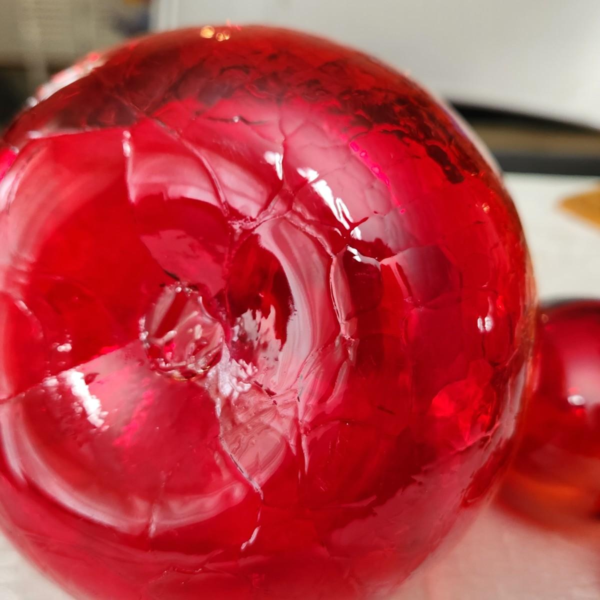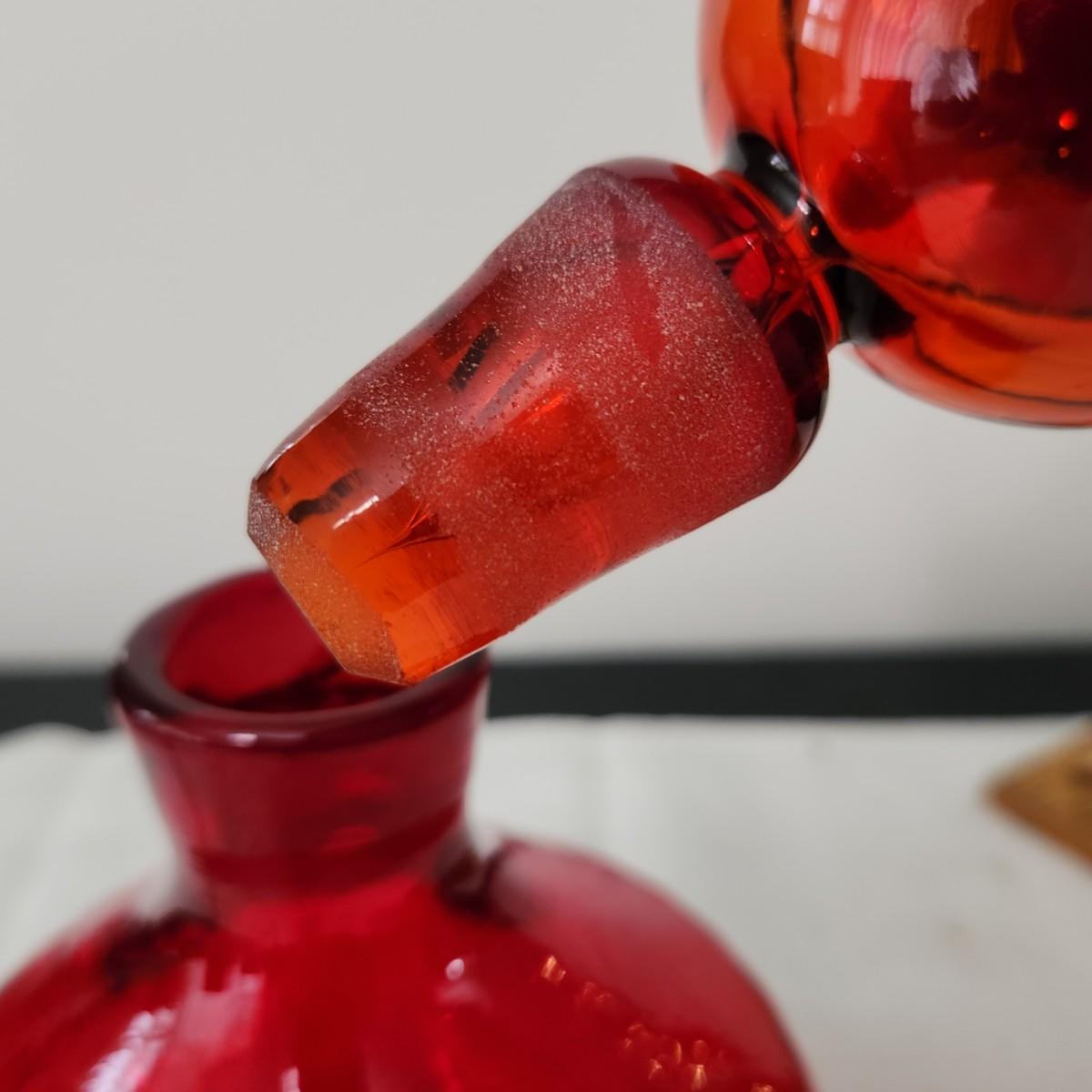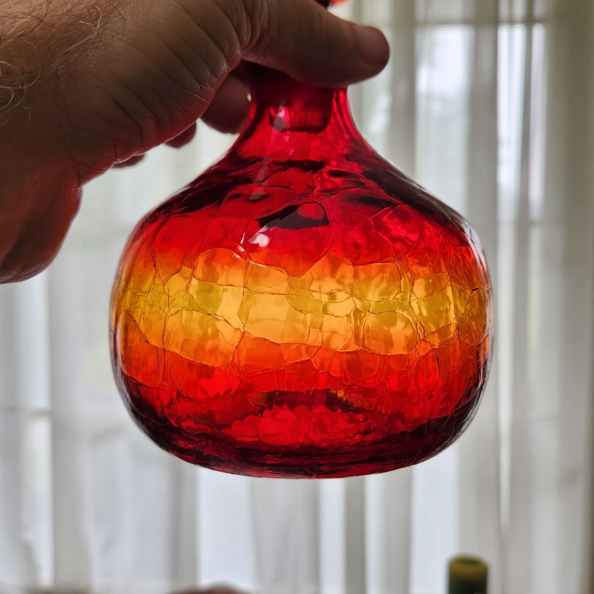 2 Crackle Glass Amberina Red Crackle Blenko Decanter & Green Crackle Pitcher