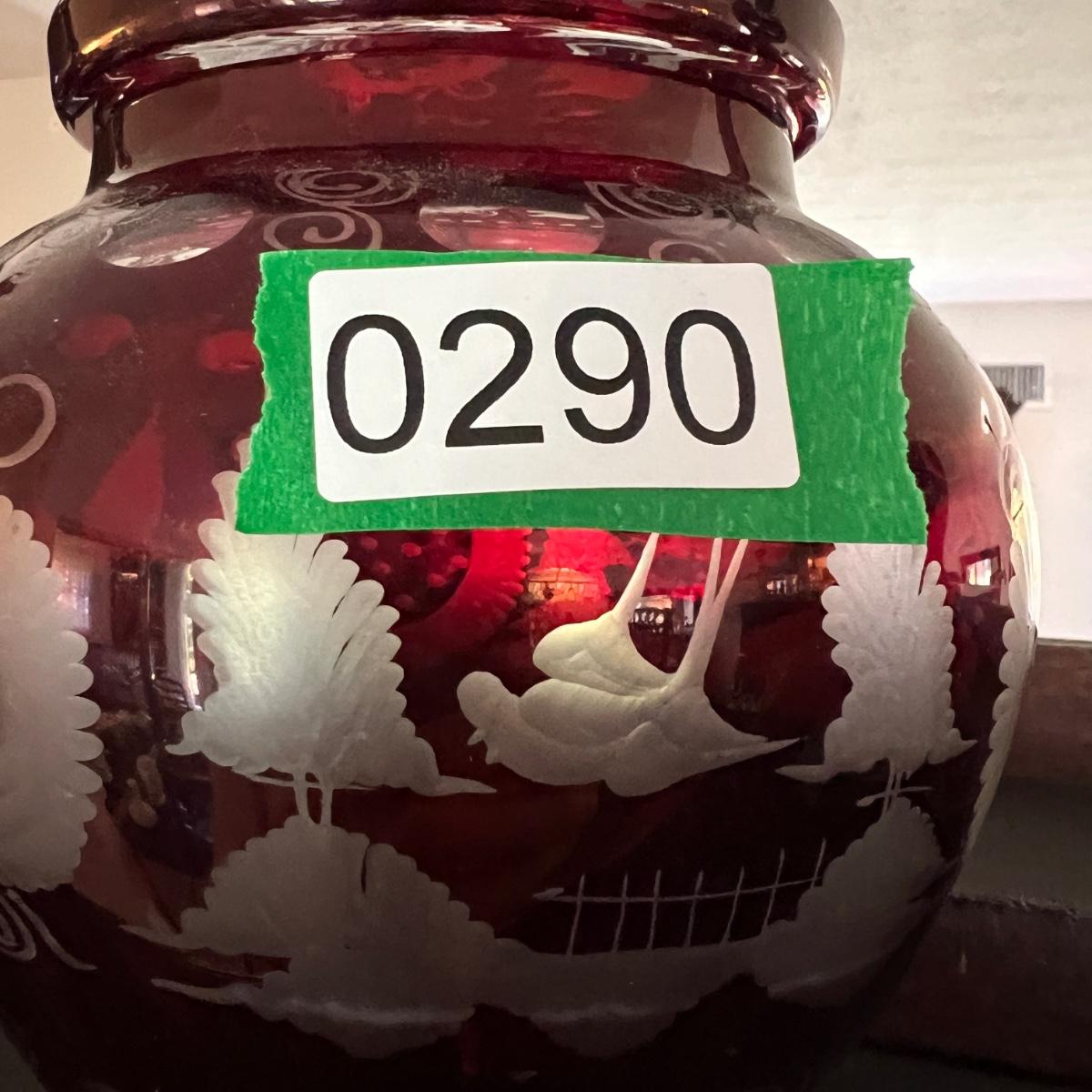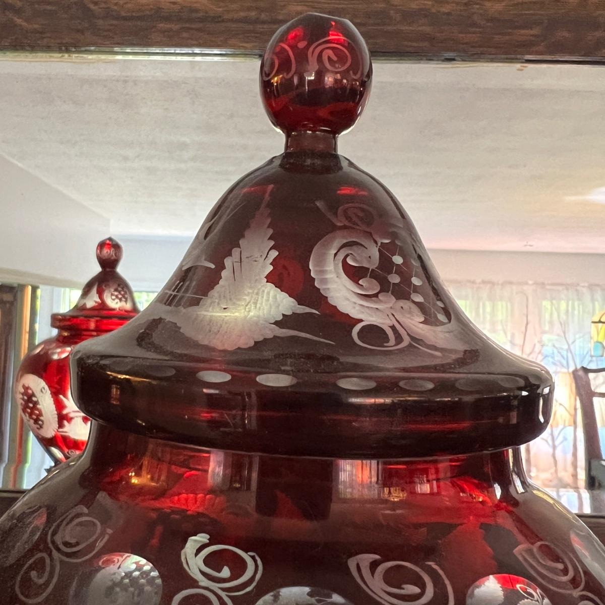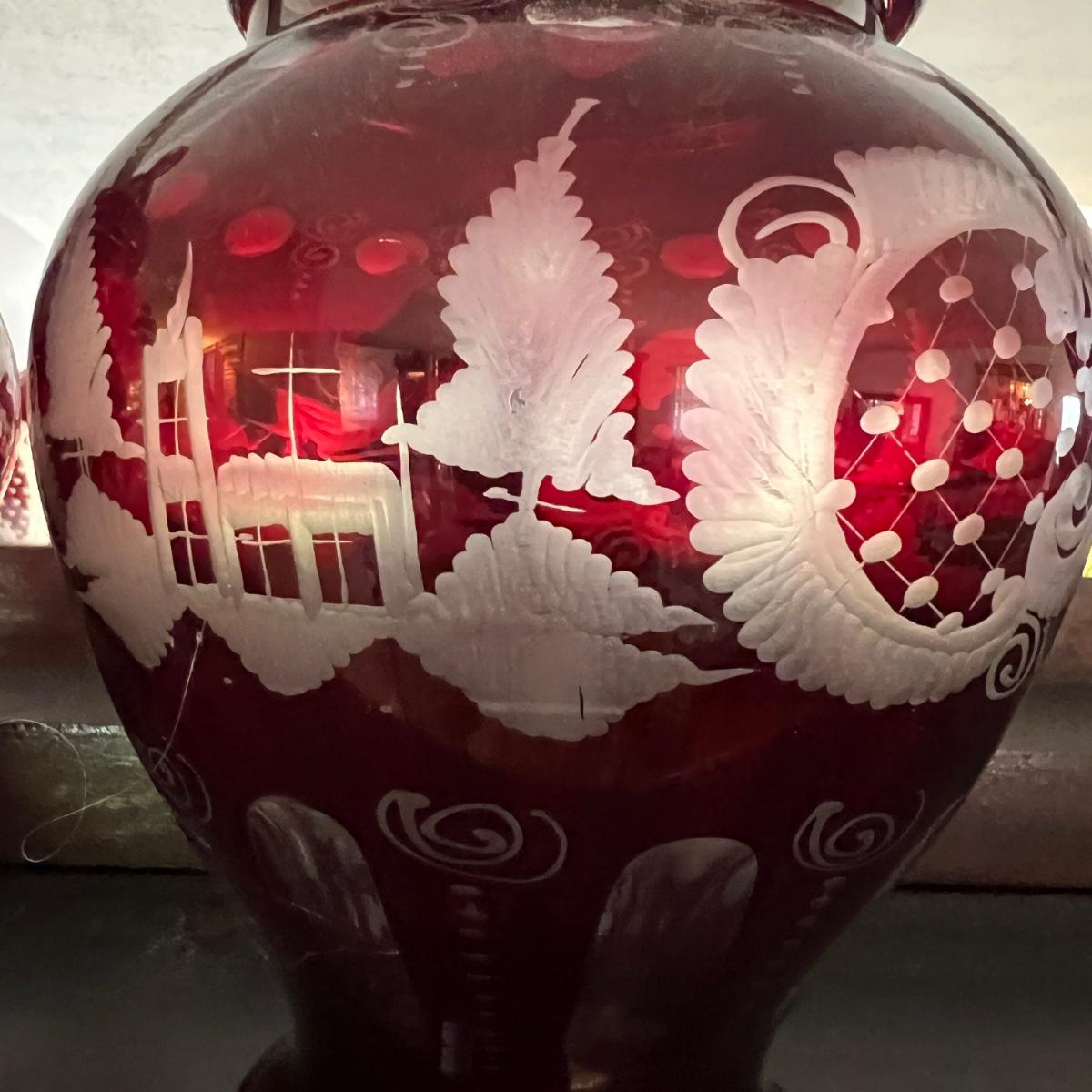2 Antique Cranberry Cut to Clear Glass Ruby Vases 11"