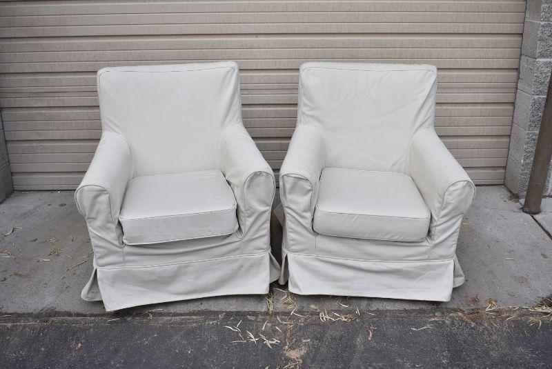 2 Cream Colored Upholstered Armchairs with removable/washable covers