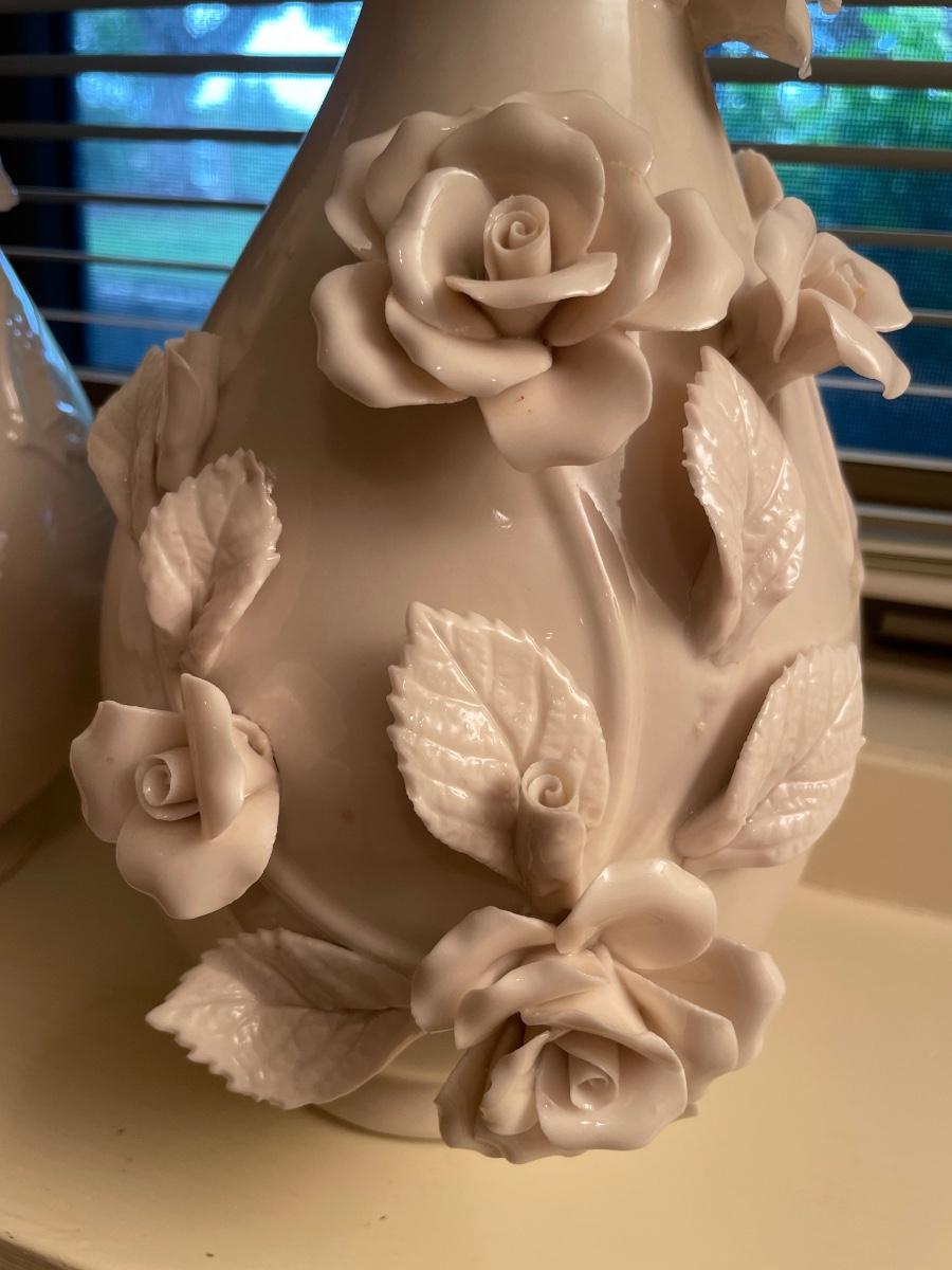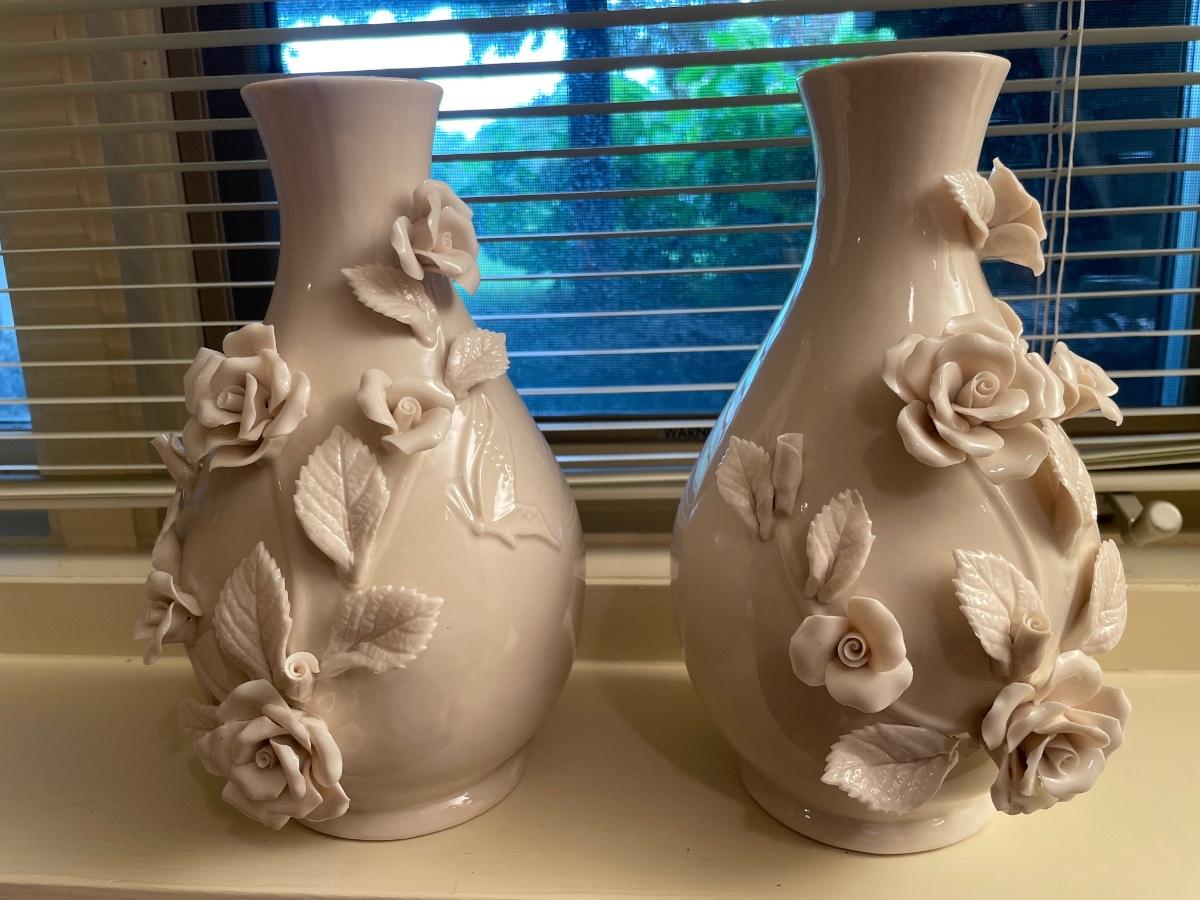 2 cream rose vases