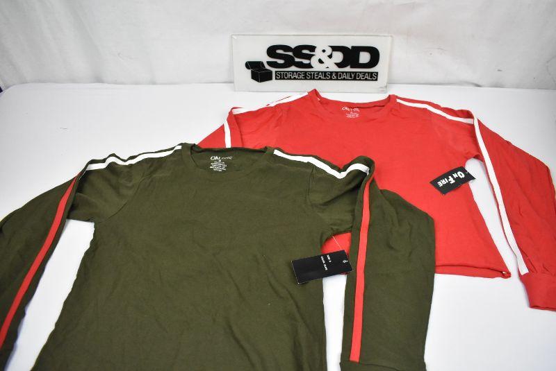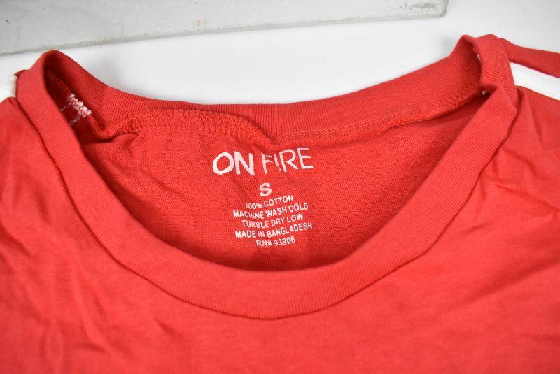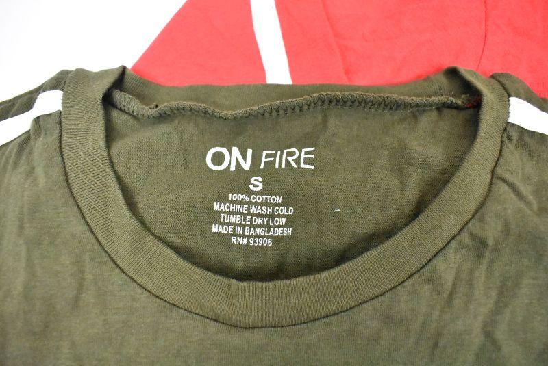2 Crop Top Long Sleeve Shirts size Small: Red with White Stripes & Olive Green with Red & White Stripes. Brand is "On Fire" - New