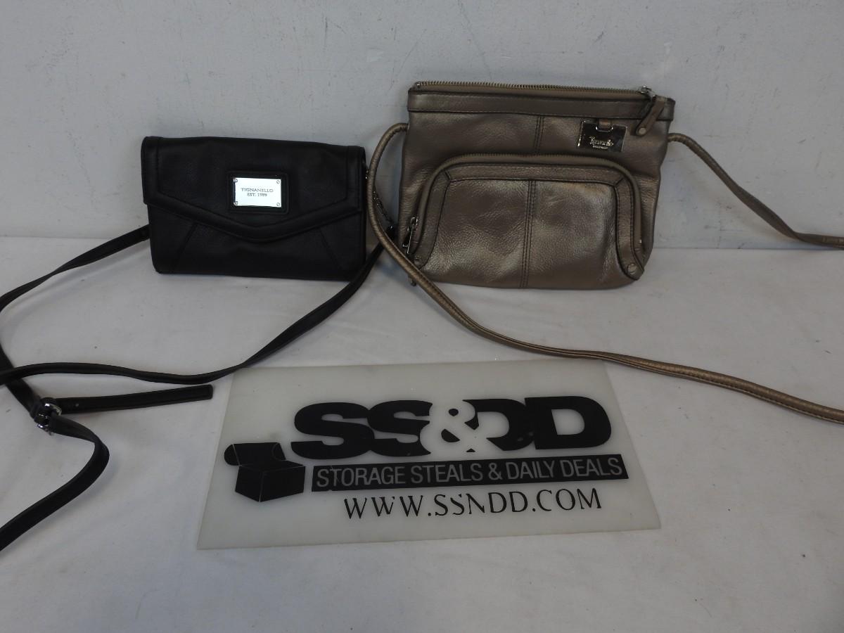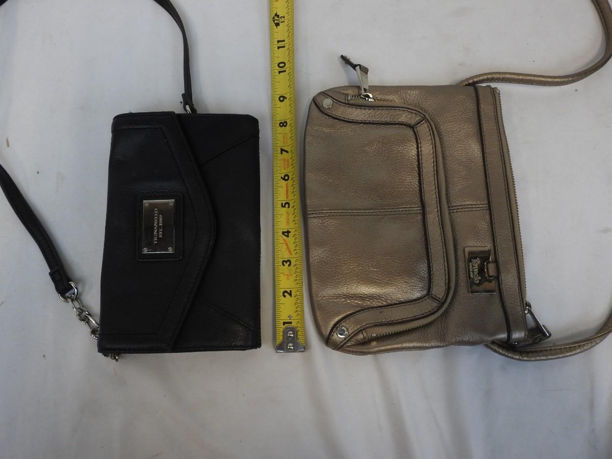 2 Cross Body Purses by Tignanello: Black Envelope style, Removable Strap & Gold