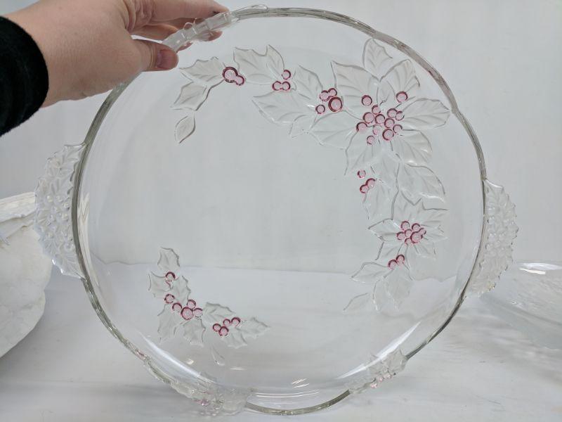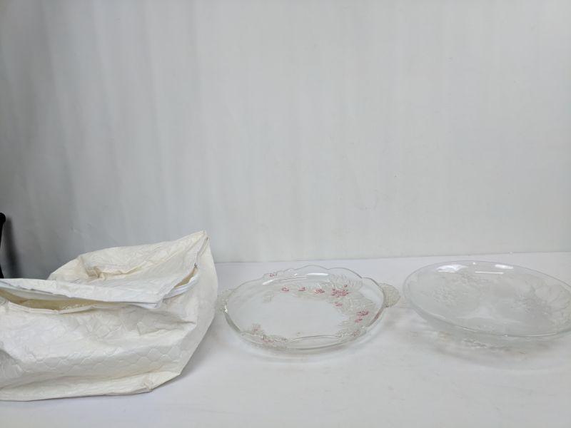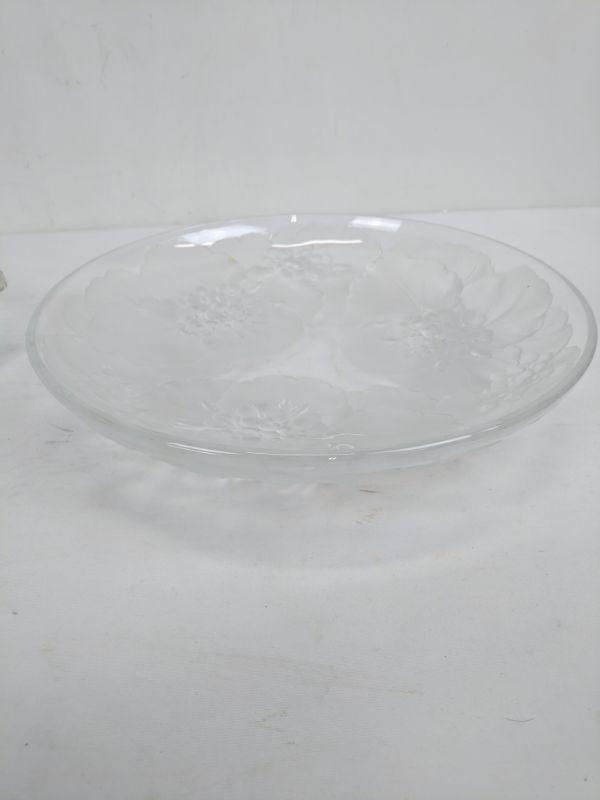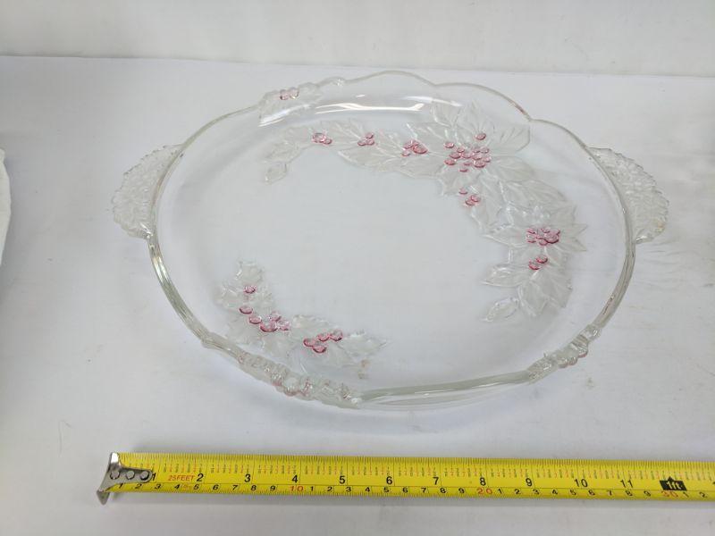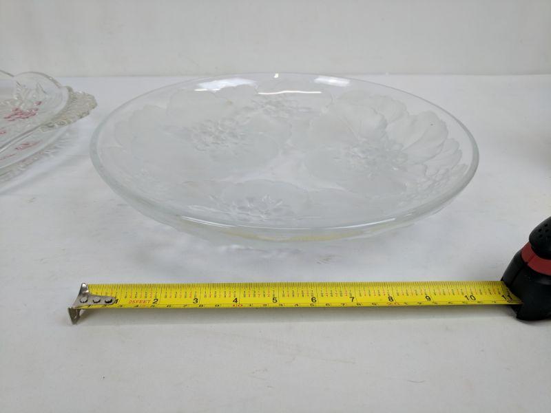 2 Crystal Dishes, Large Crystal Flower Platter/Bowl, Poinsettia Glass Platter