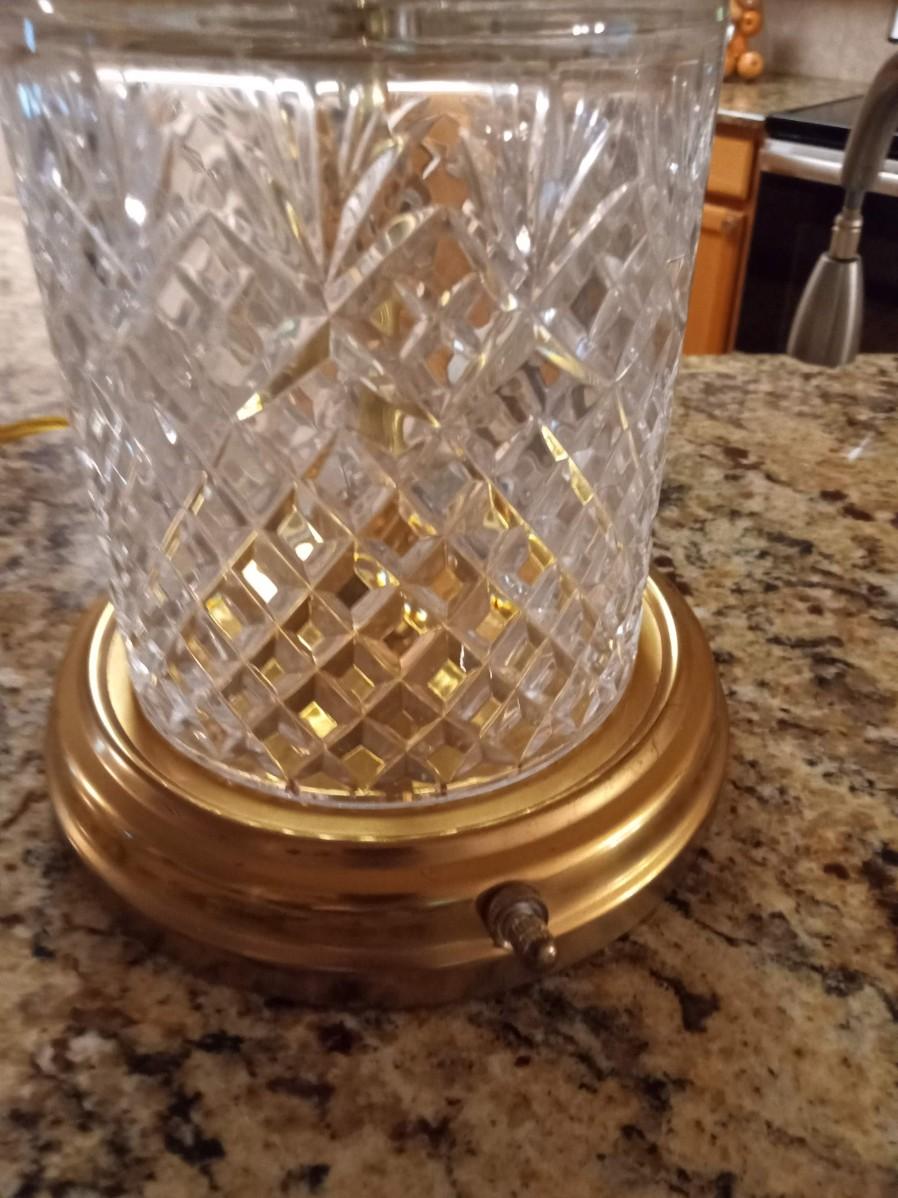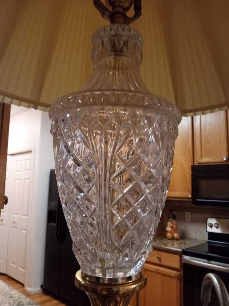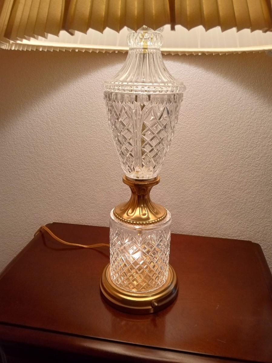2 MATCHING CRYSTAL LAMPS THAT LIGHT ON TOP AND HAVE A SECOND KNOB TO LIGHT THE BOTTOM. THEY STAND APPROX 34"