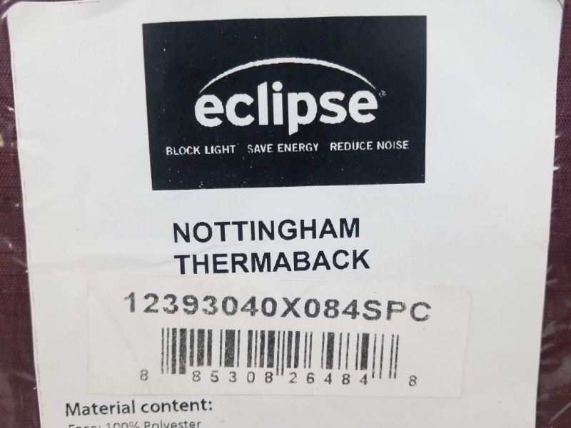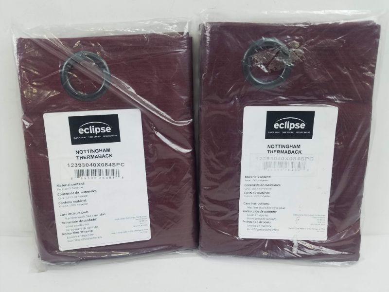 2 Curtain Panels, Eclipse Blackout Curtains Nottingham Thermaback. Dark Maroon. 40"x84" each - New