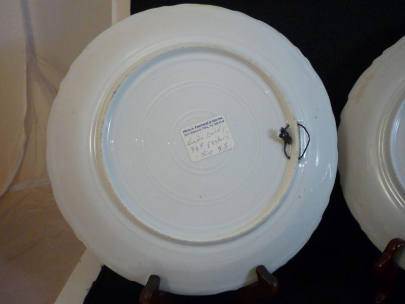 2 - Decorative Antique Plates - Unsigned - Painted Lady Green Gold Rim