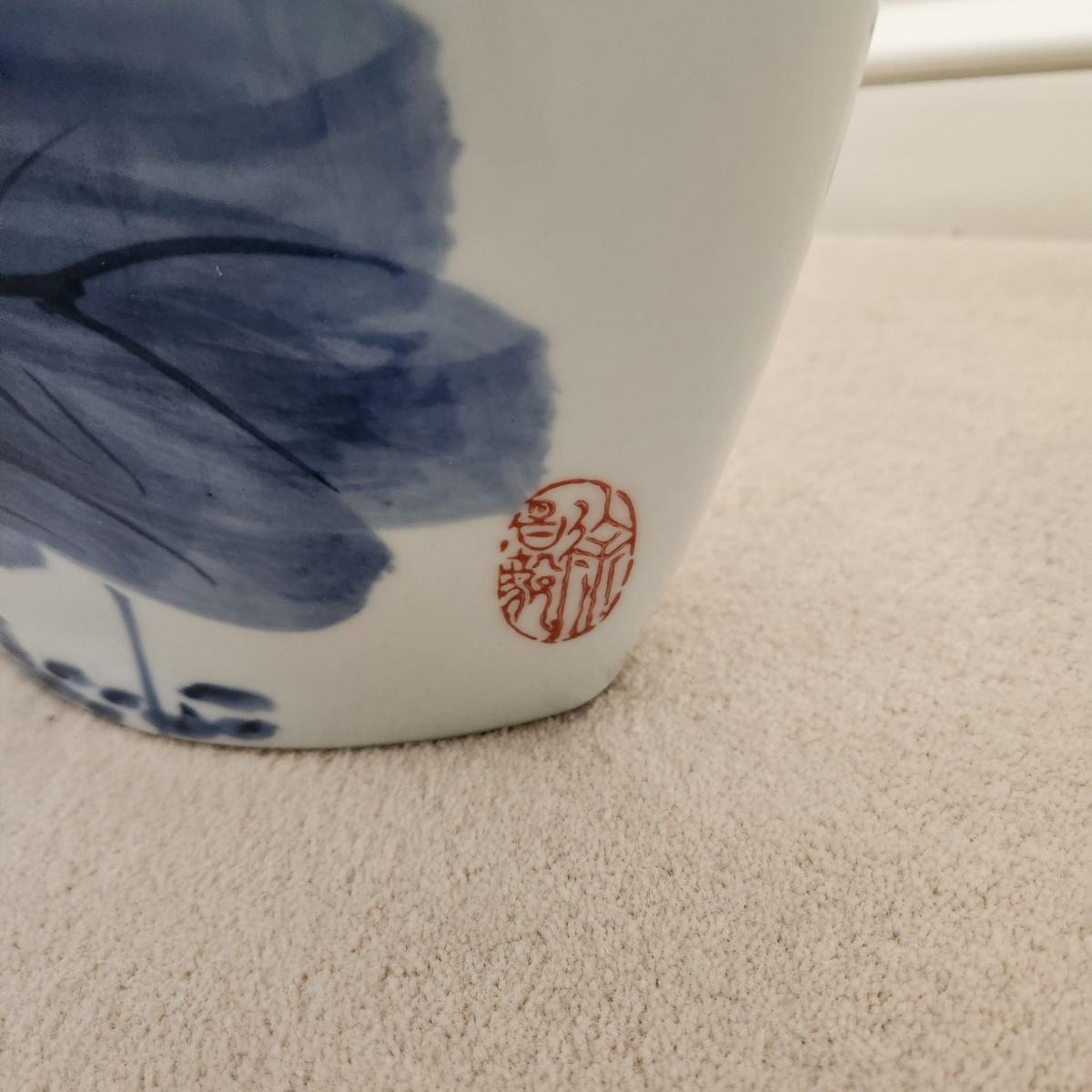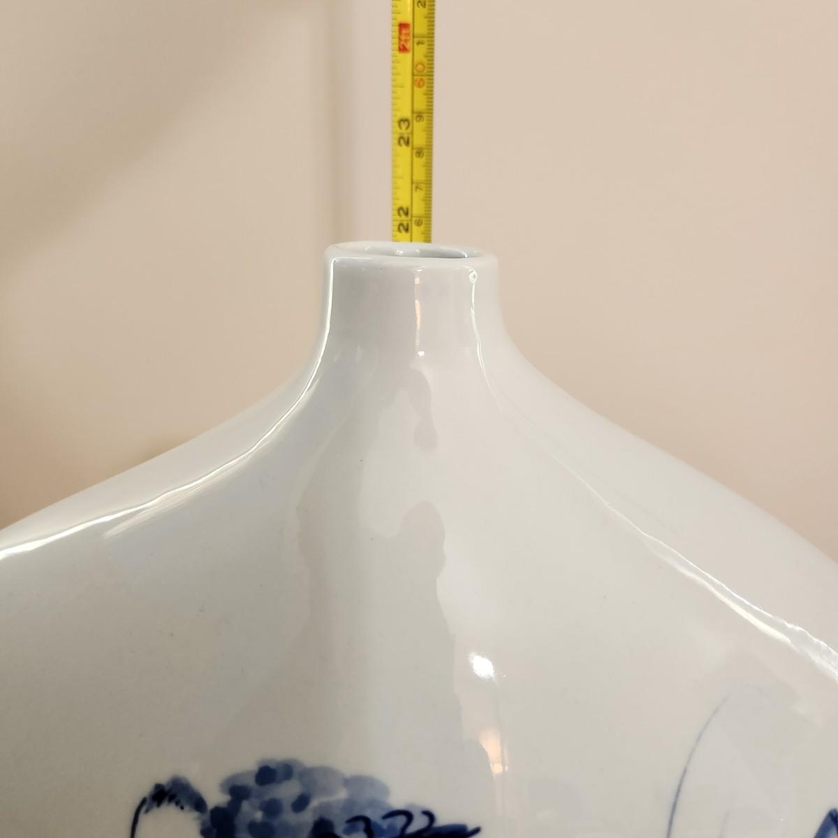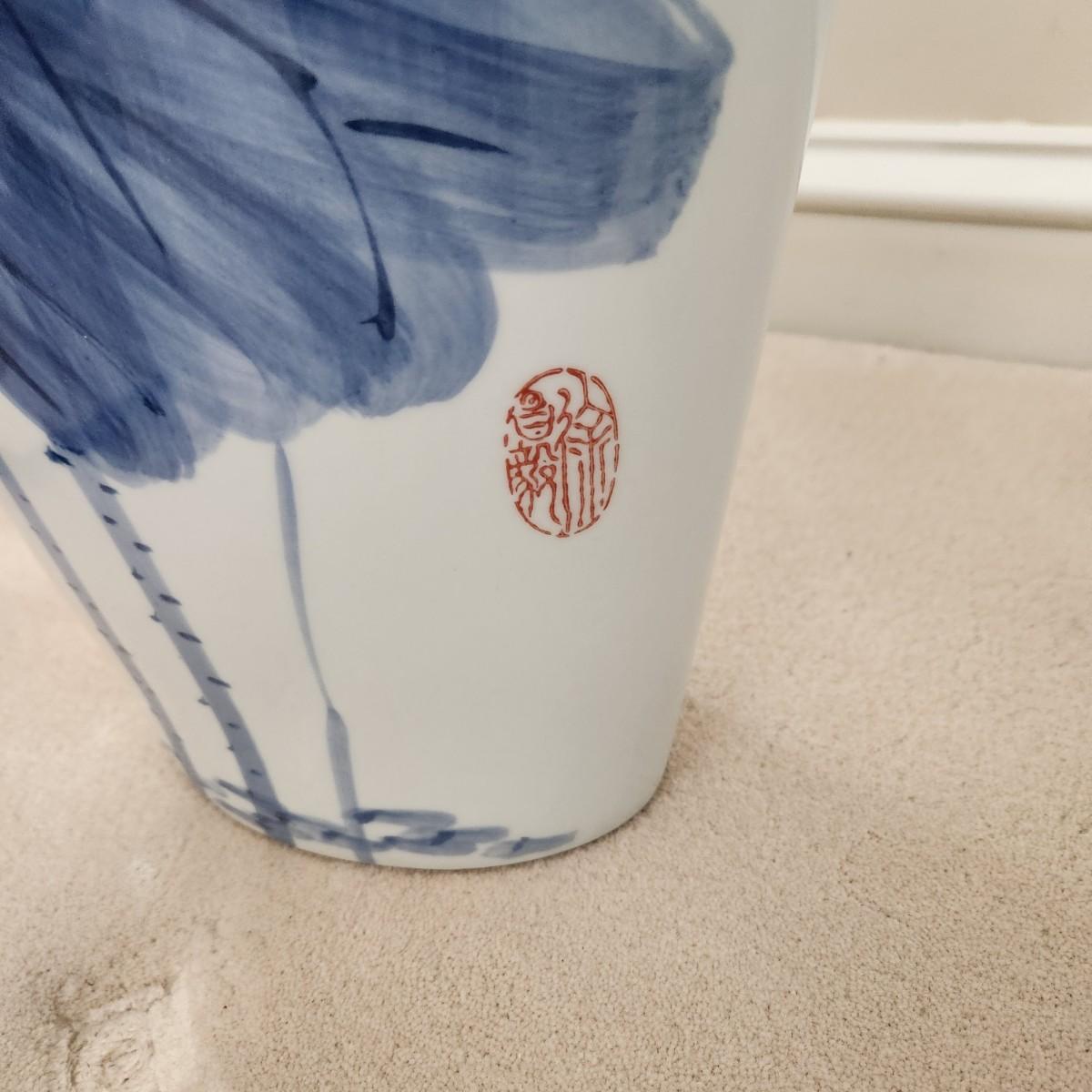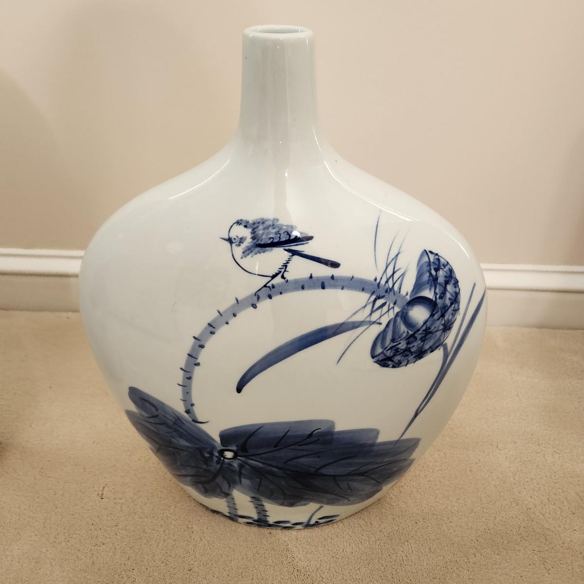 2 Decorative Blue and White Marsh Scene Vases