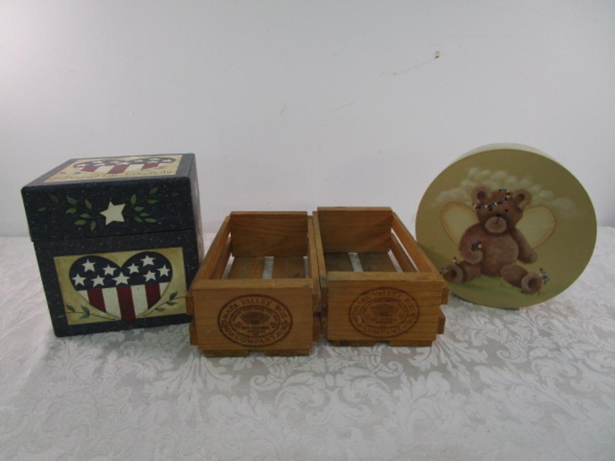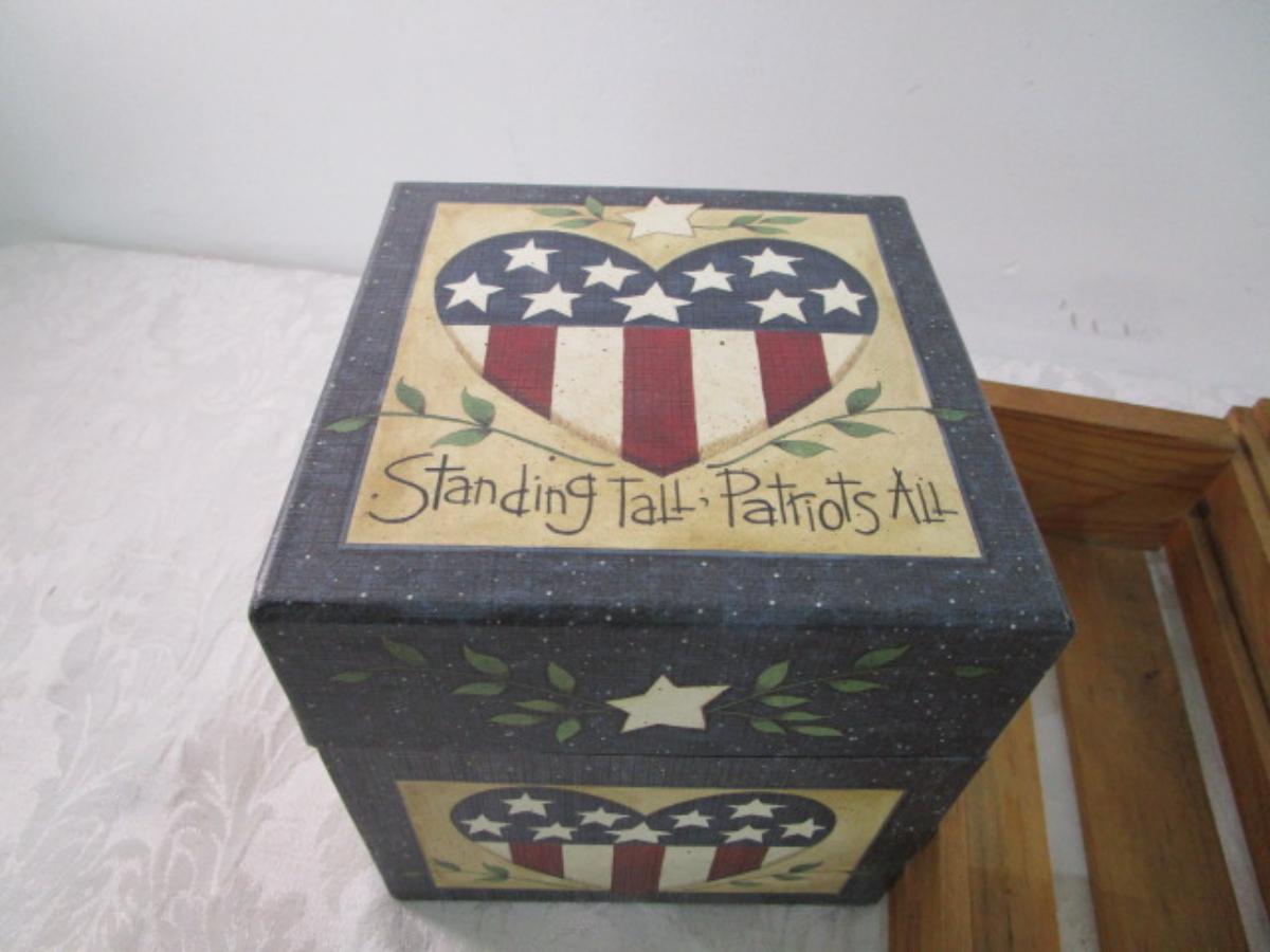 Bear box with lit is 7-3/8" across x 3" tall, Patriotic is 6-1/2" tall x 6-1/8" square