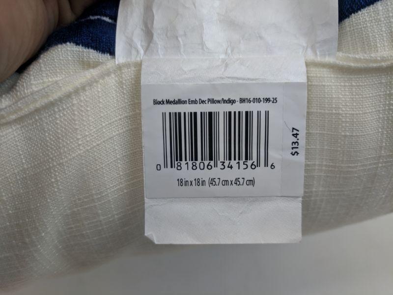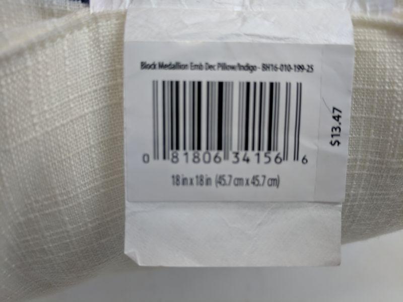 2 Decorative Pillows, Cream with Royal Blue Designs, 18x18 each - New