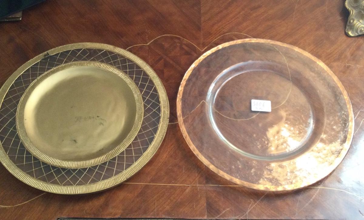 2 Decorative plates 1 is lucite the other is glass trimmed in gold