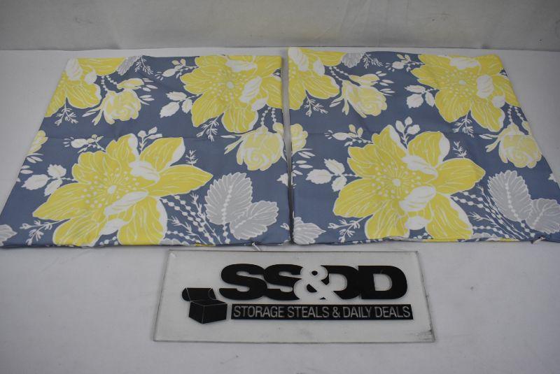 2 Decorative Throw Pillow Covers, 17"x17" each. Blue/Yellow Floral - New