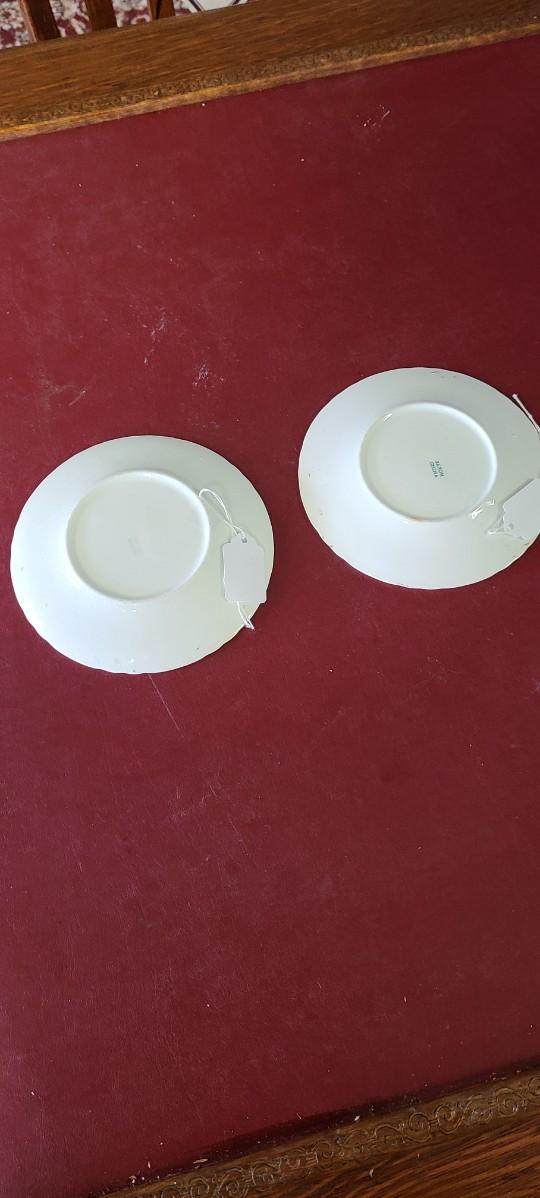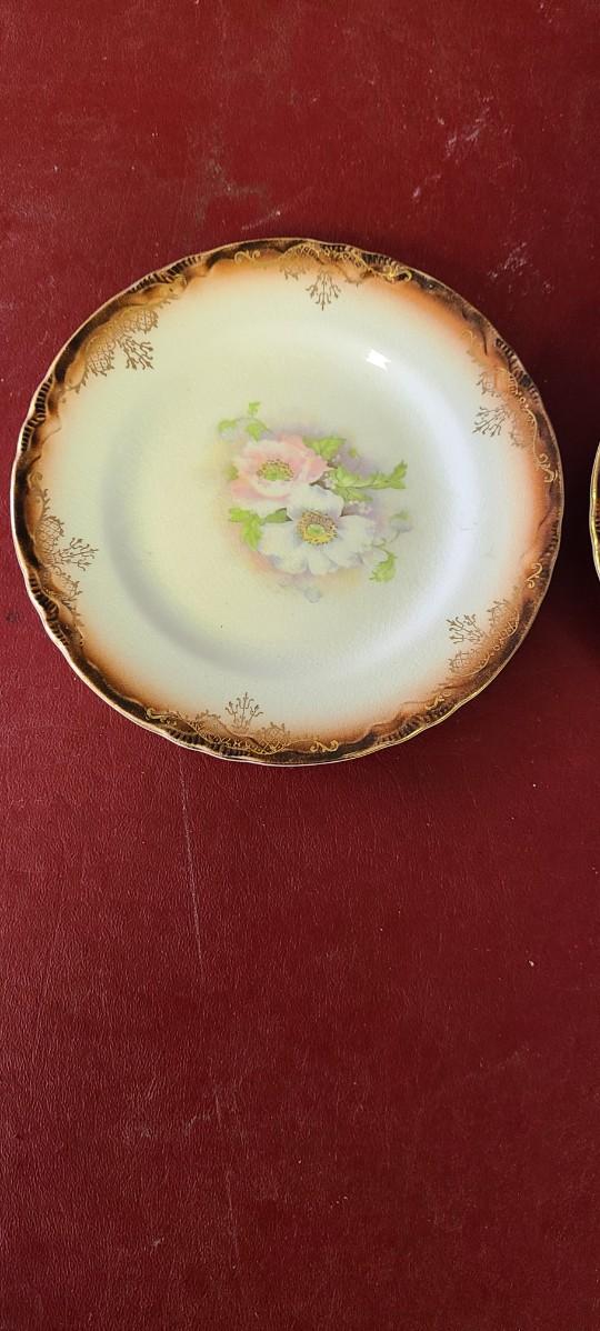 2 Dessert Plates with Brown Edges and Flowers - 6 1/2 inches across