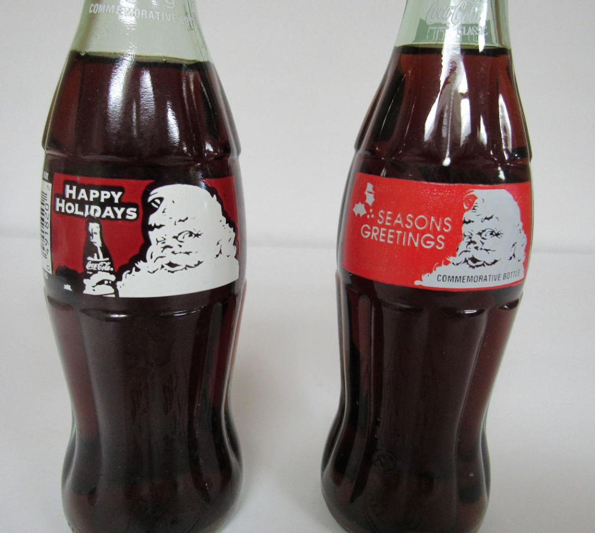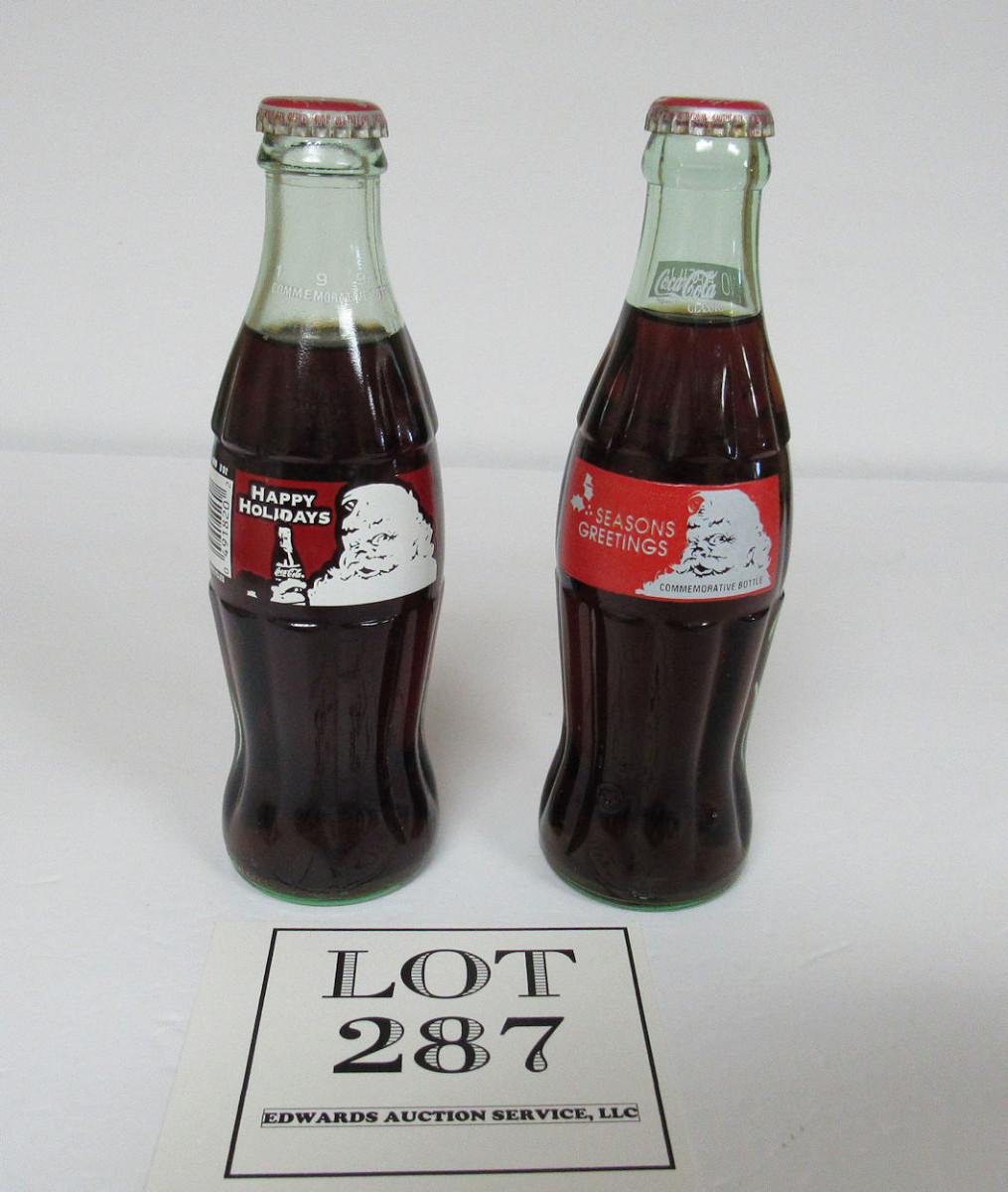 2 Different Vintage Coca Cola Christmas Bottles With Santa