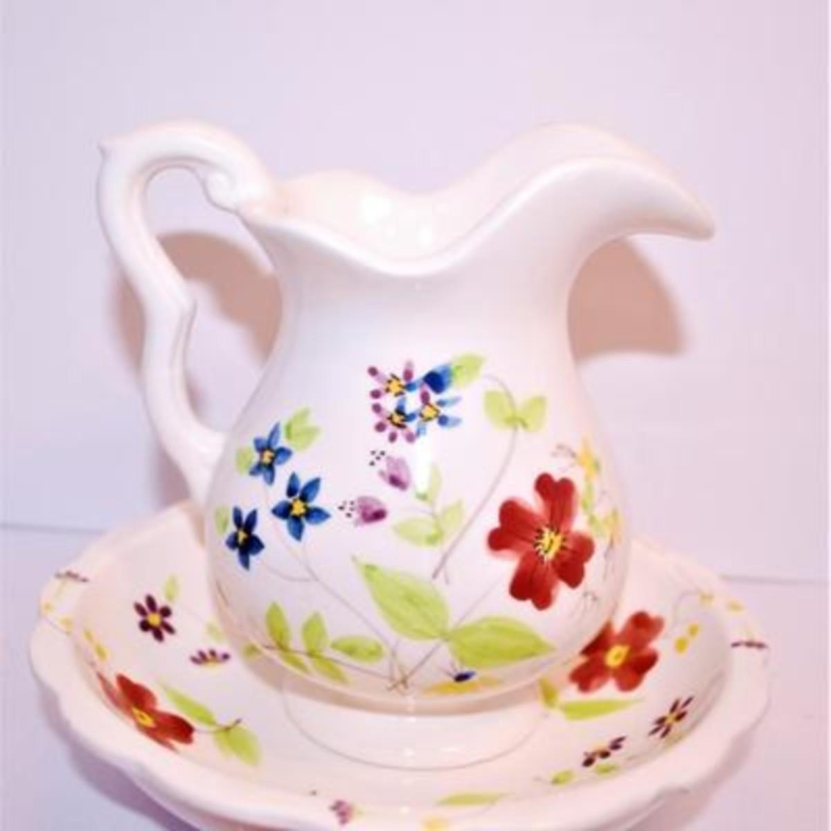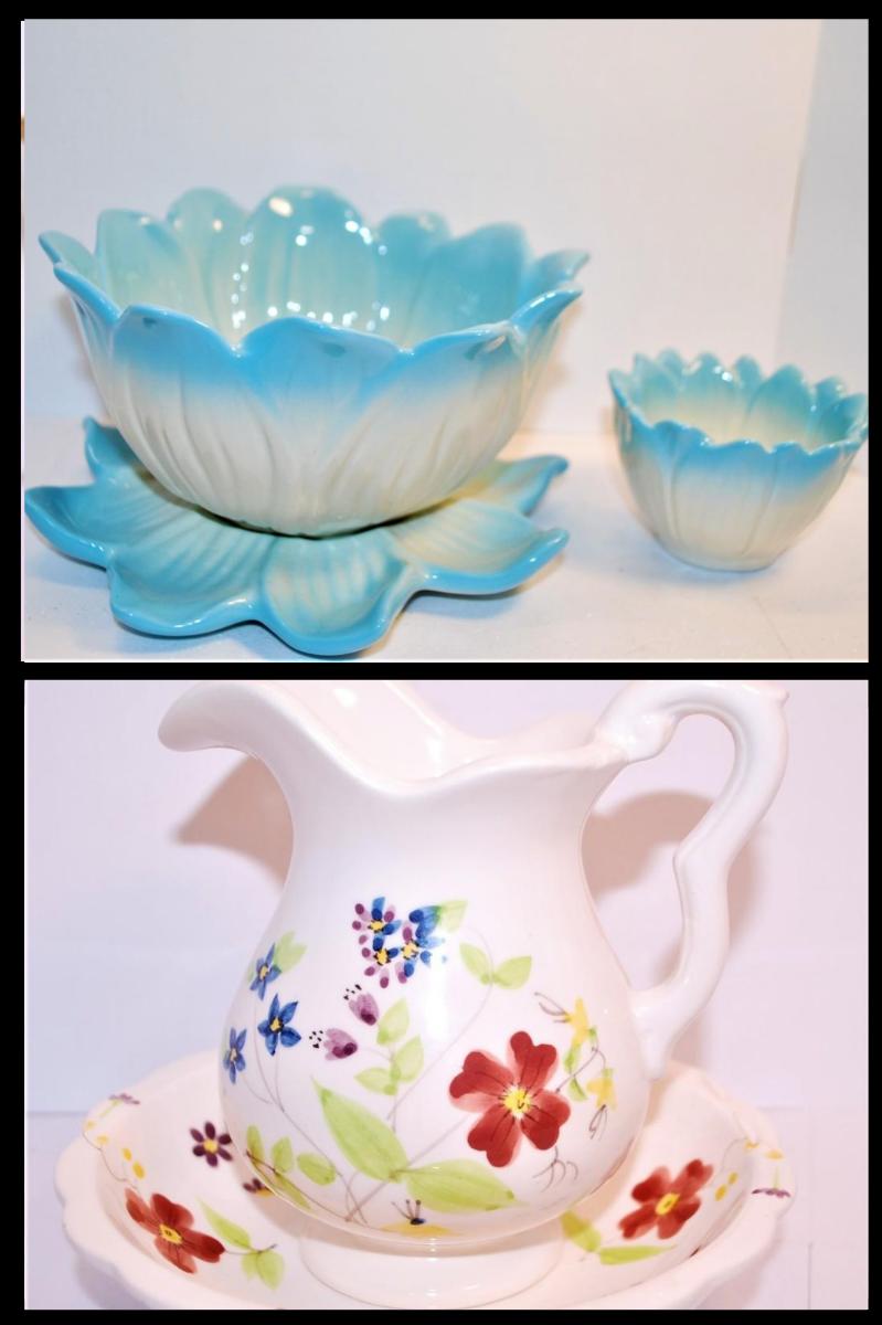 2 Dish Sets - Robin's Egg Blue Lilly Pad Dish Set - 6 1/2" W x 3 1/2" & "Elizabeth Arden " Flowered Pitcher (5" H) & Matching Bowl (7" W) Set