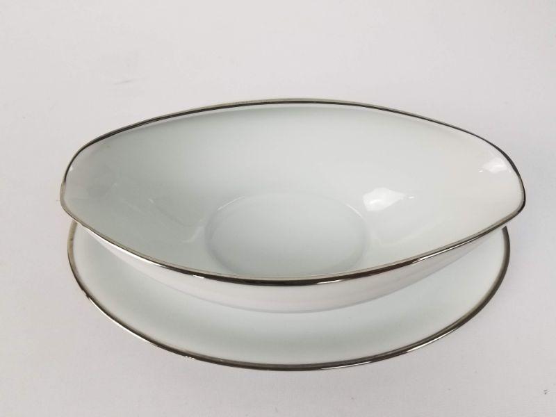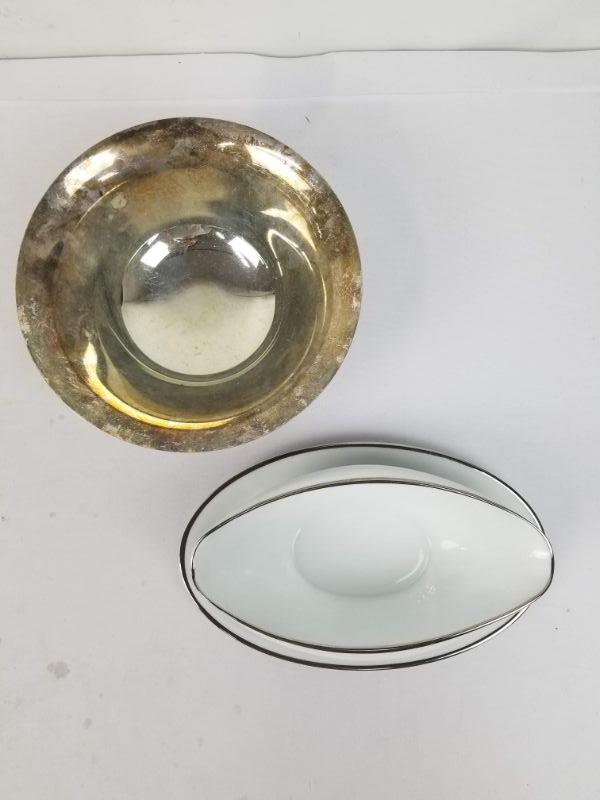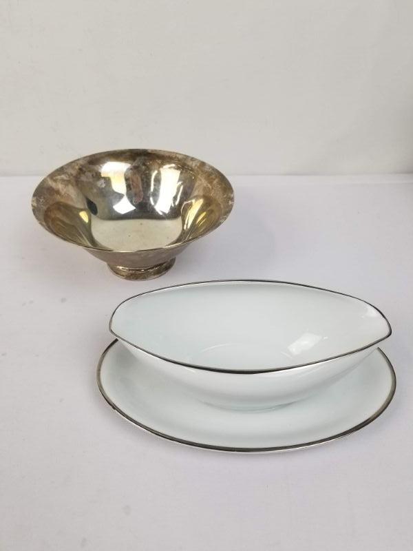 2 Dishes: Noritake Gravy Boat, Tarnished Silver Bowl