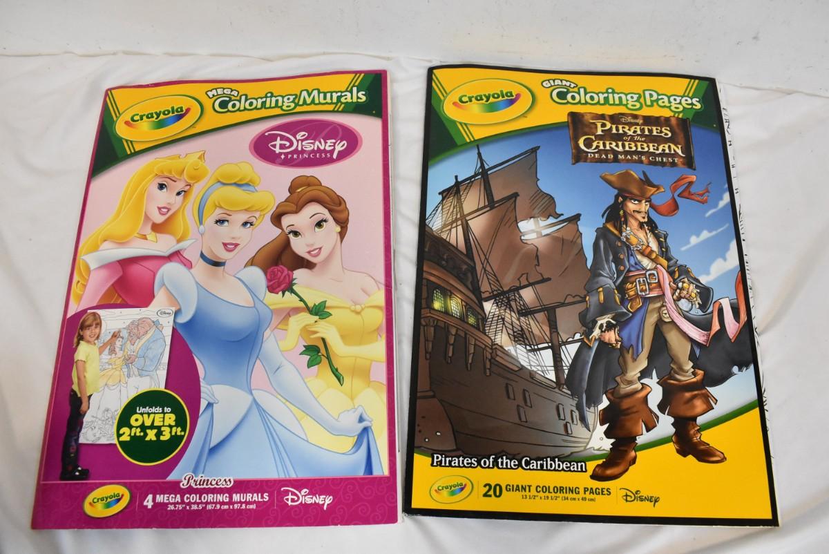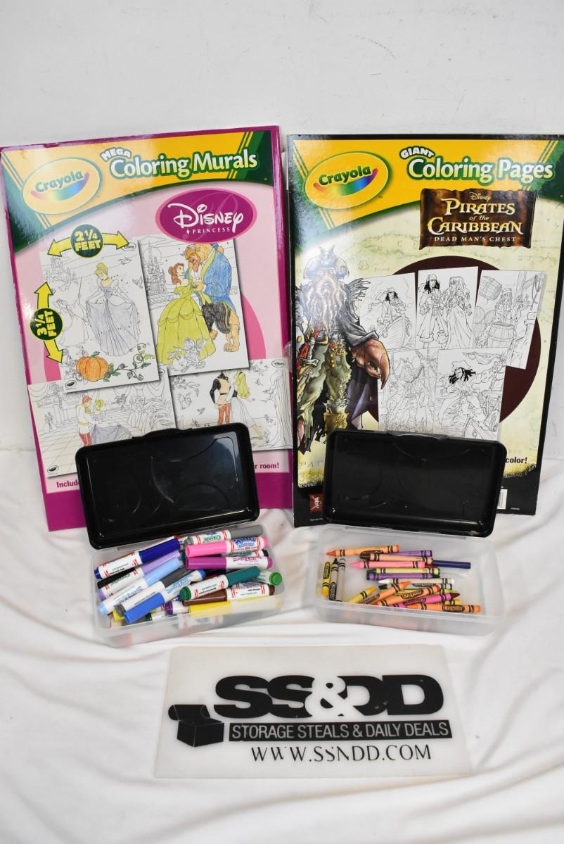 2 Disney Mega Coloring Murals, Box of Markers and Crayons