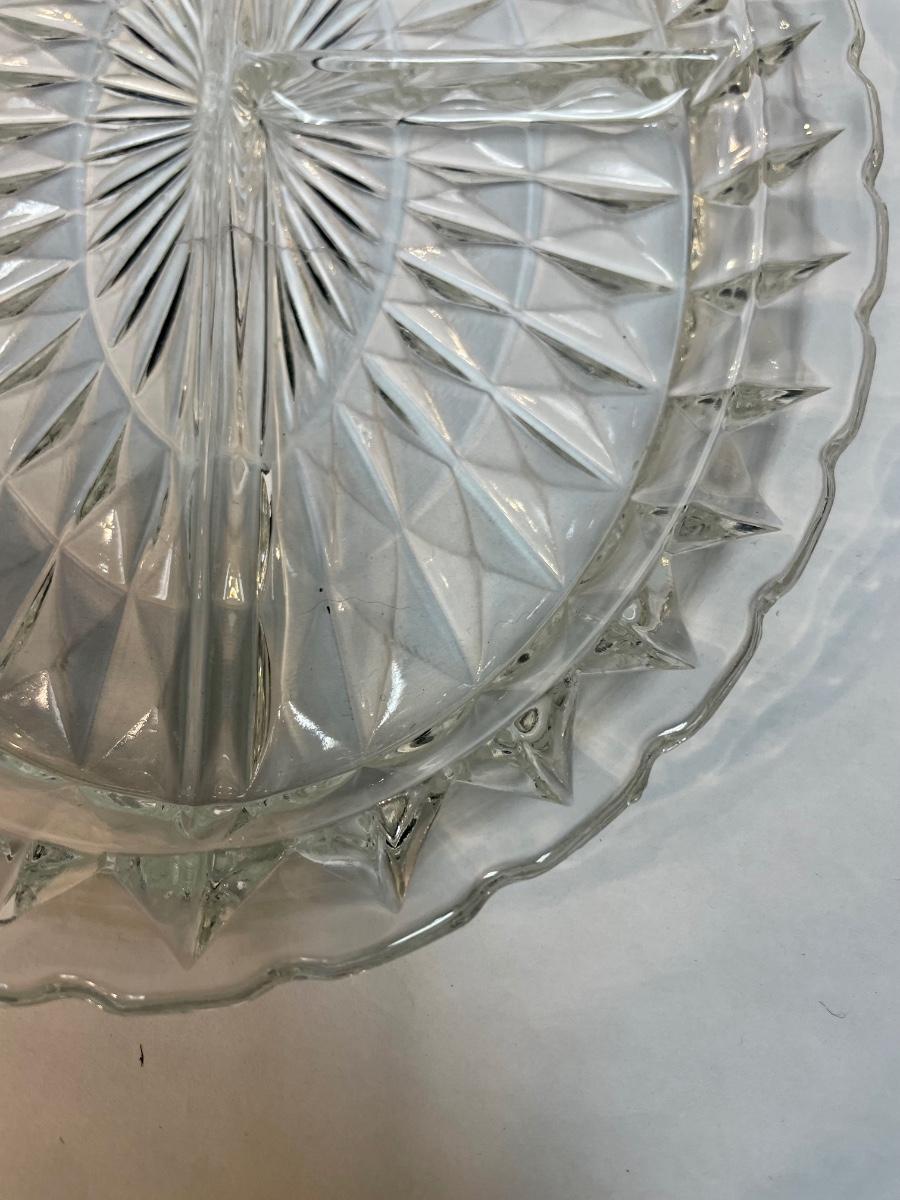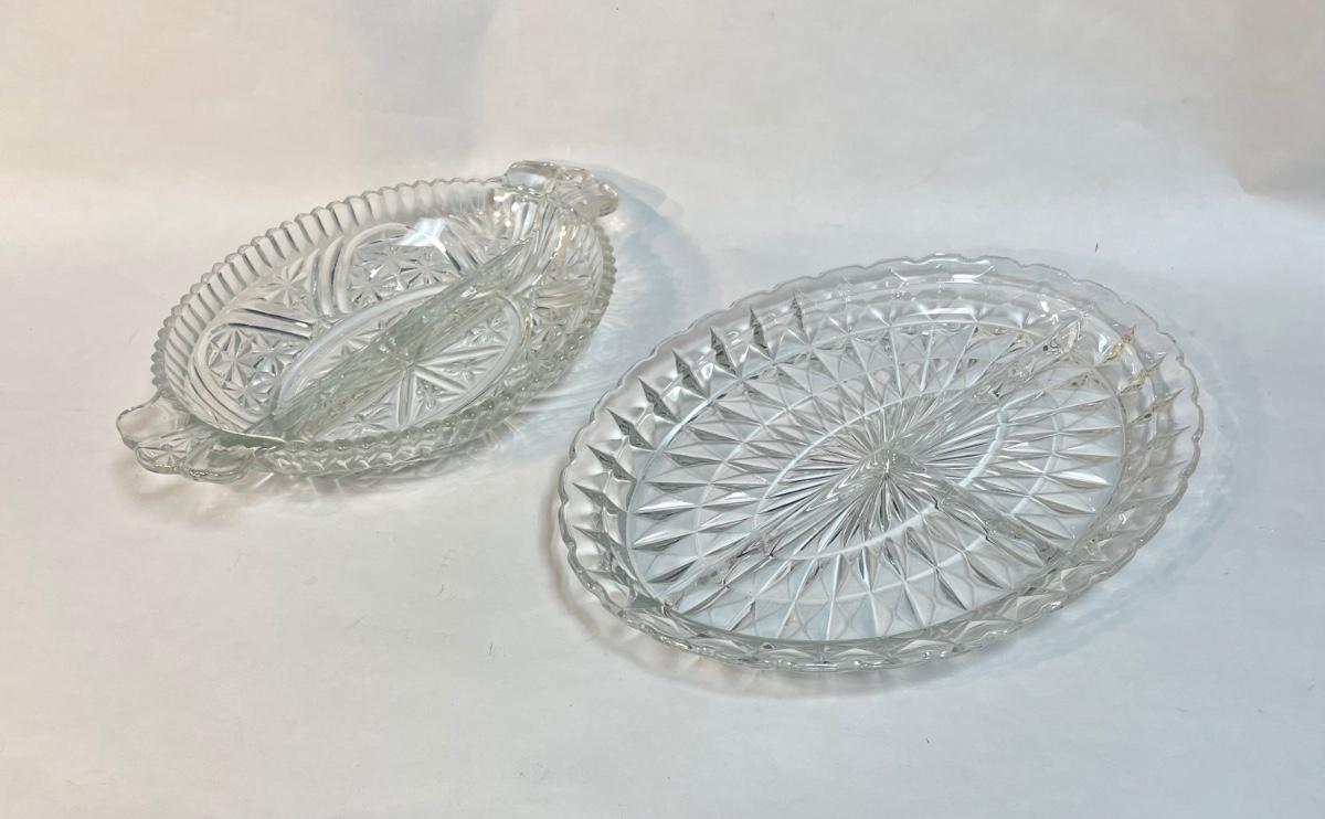 2 Divided Clear Glass Platters