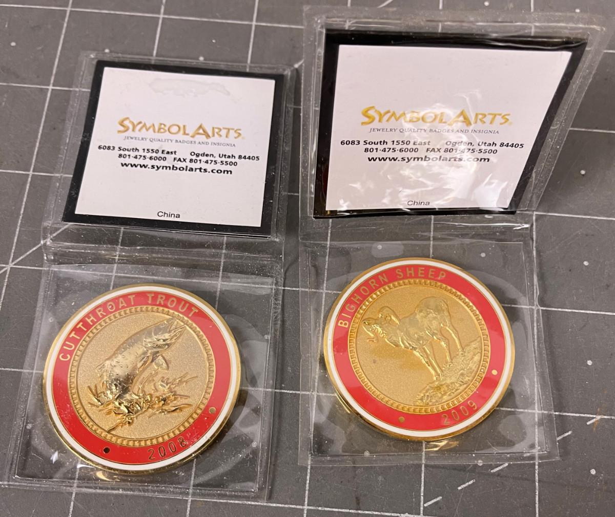 2 DNR Challenge Coins: Cut Throat Trout and Big Horn Sheep