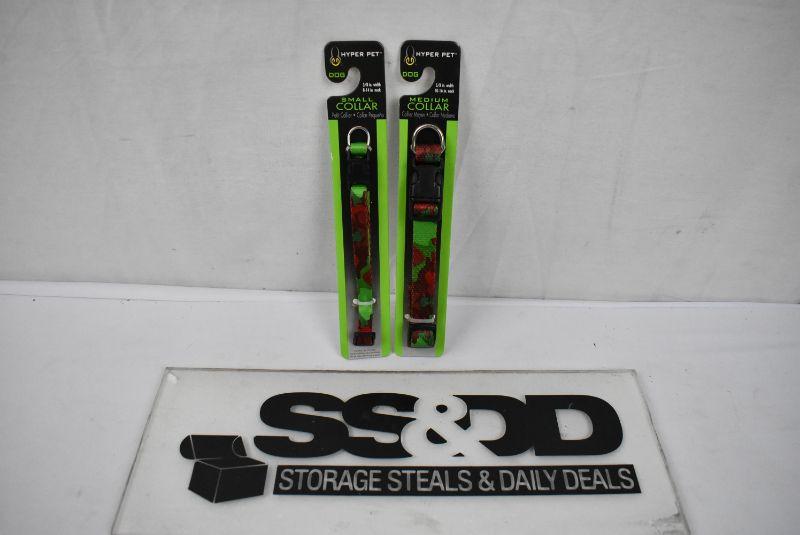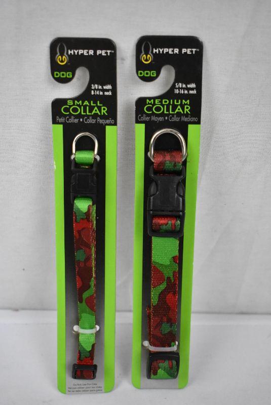 2 Dog Collars, Red & Green Camo: Small & Medium - New