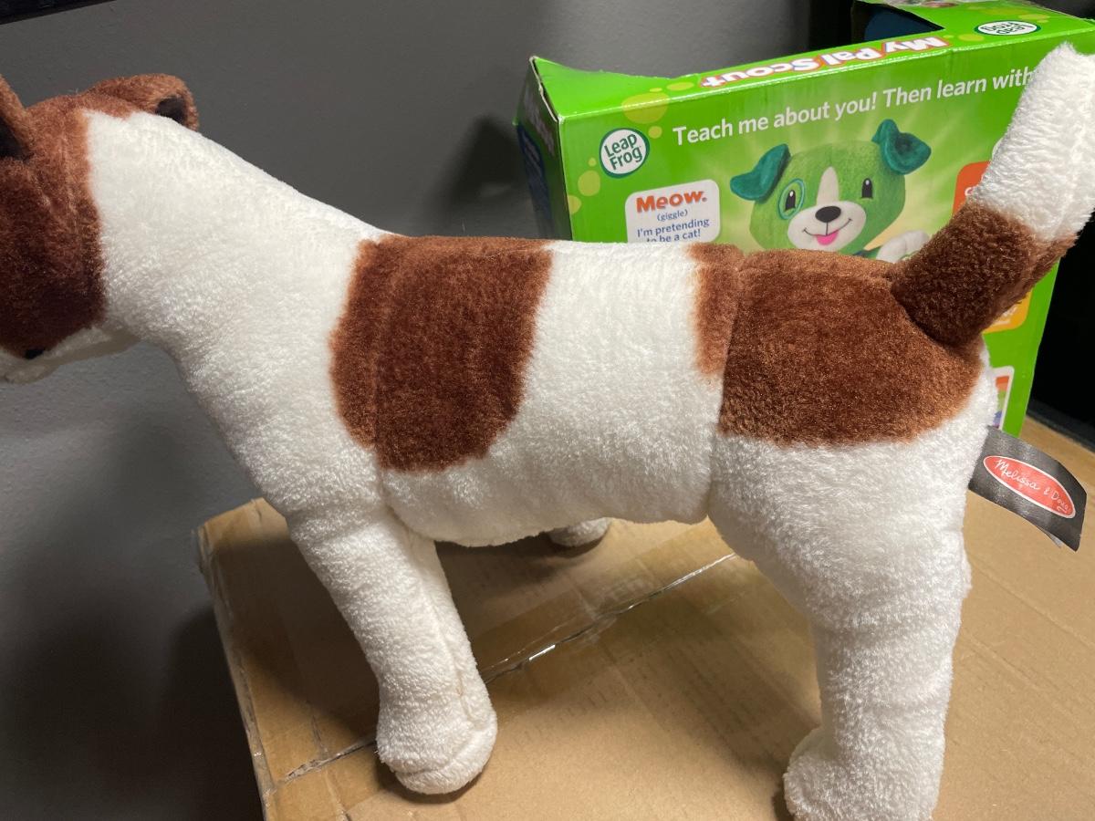 Melissa and Doug stuffed dog & Leap Frog toy that may need new batteries