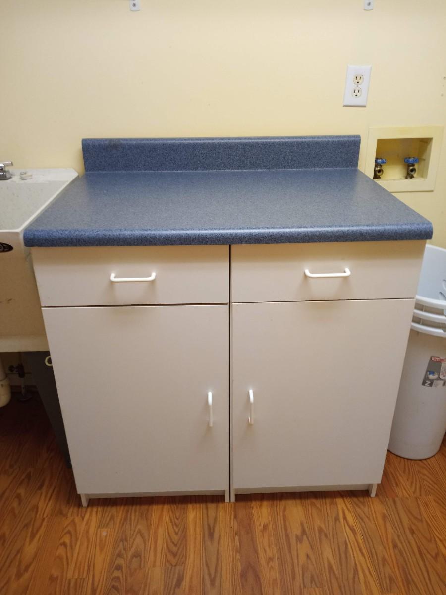2 door, 2 drawer free standing cabinet w countertop