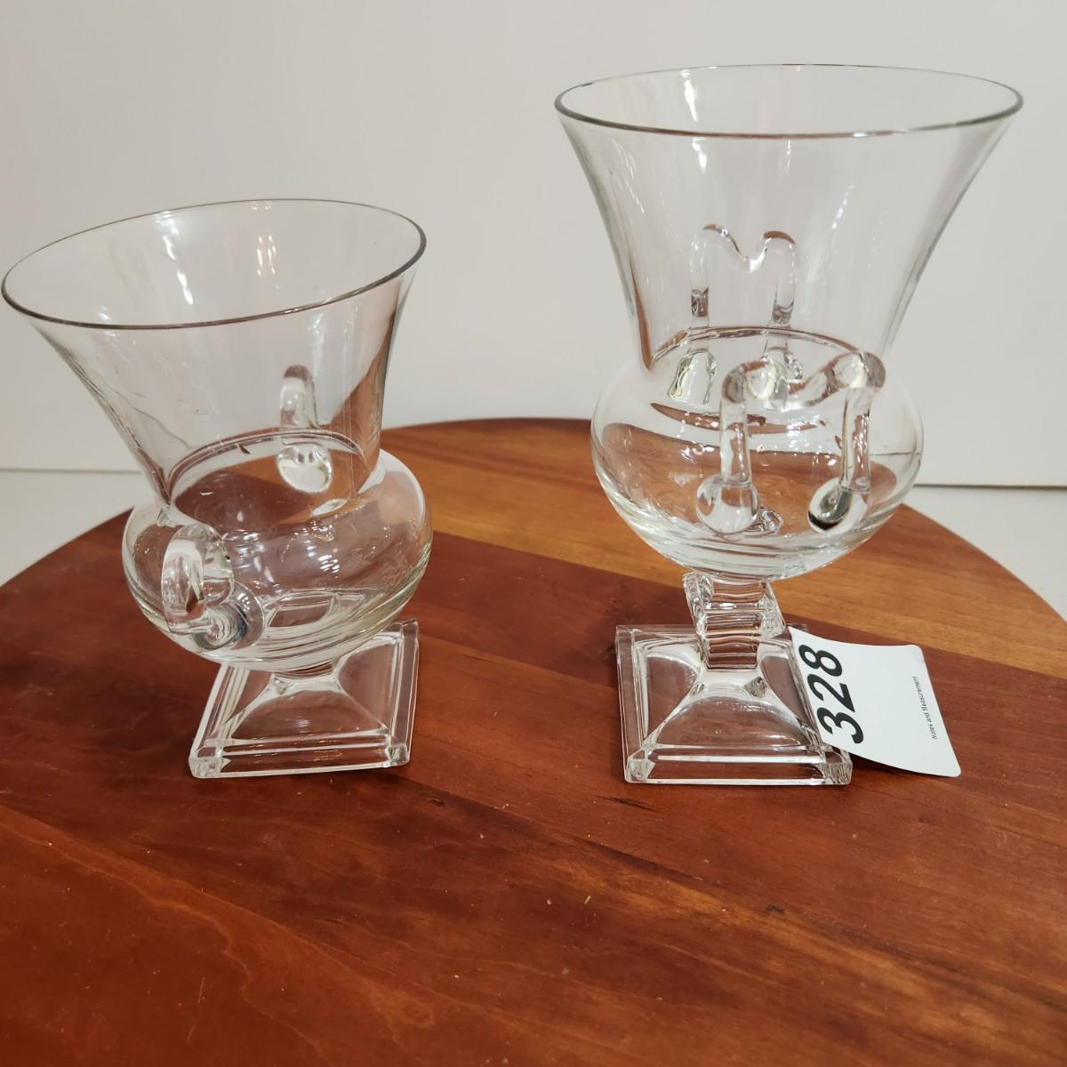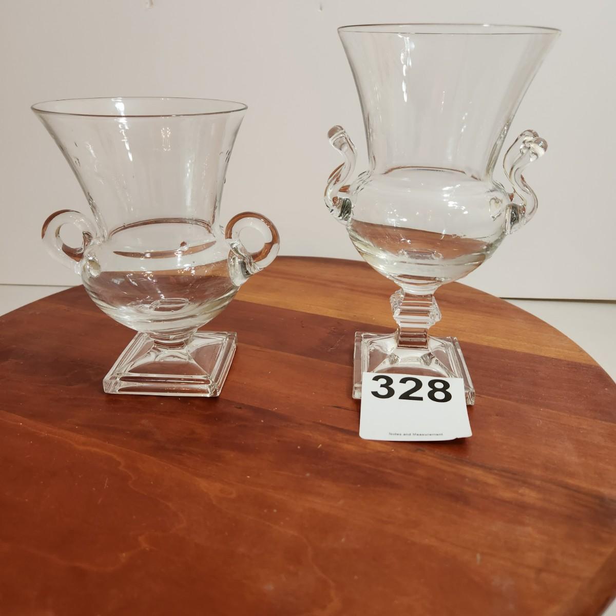 2 Double Handled  Pedestal Urn Vase 5.5" & 6.5"