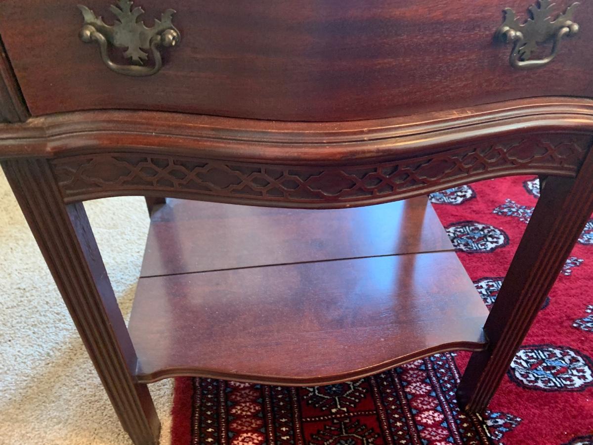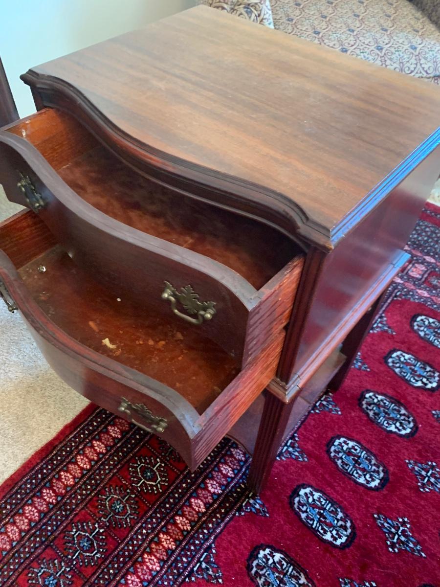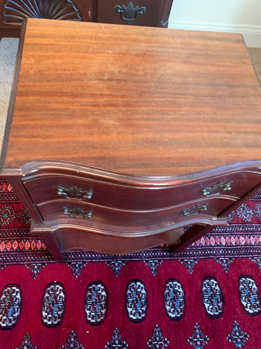 Some light age/ use surface wear - please notice fancy bottom trim at corners is missing from one side. Buying as is as found.