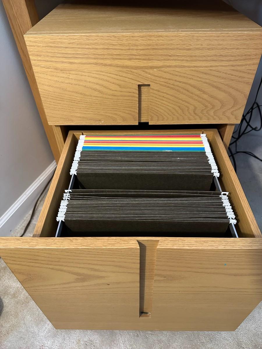 2 Drwarer filing cabine with hanging files on wheels 18" x 16" x 25"