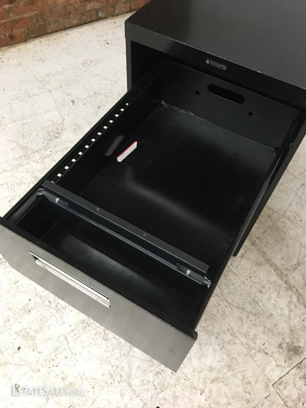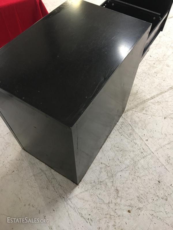 2 drawer legal size filing cabinet, black 18" wide, 27" deep, 29" tall