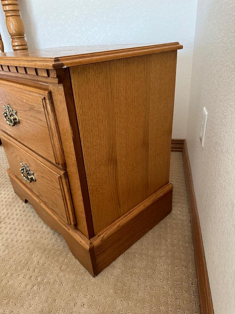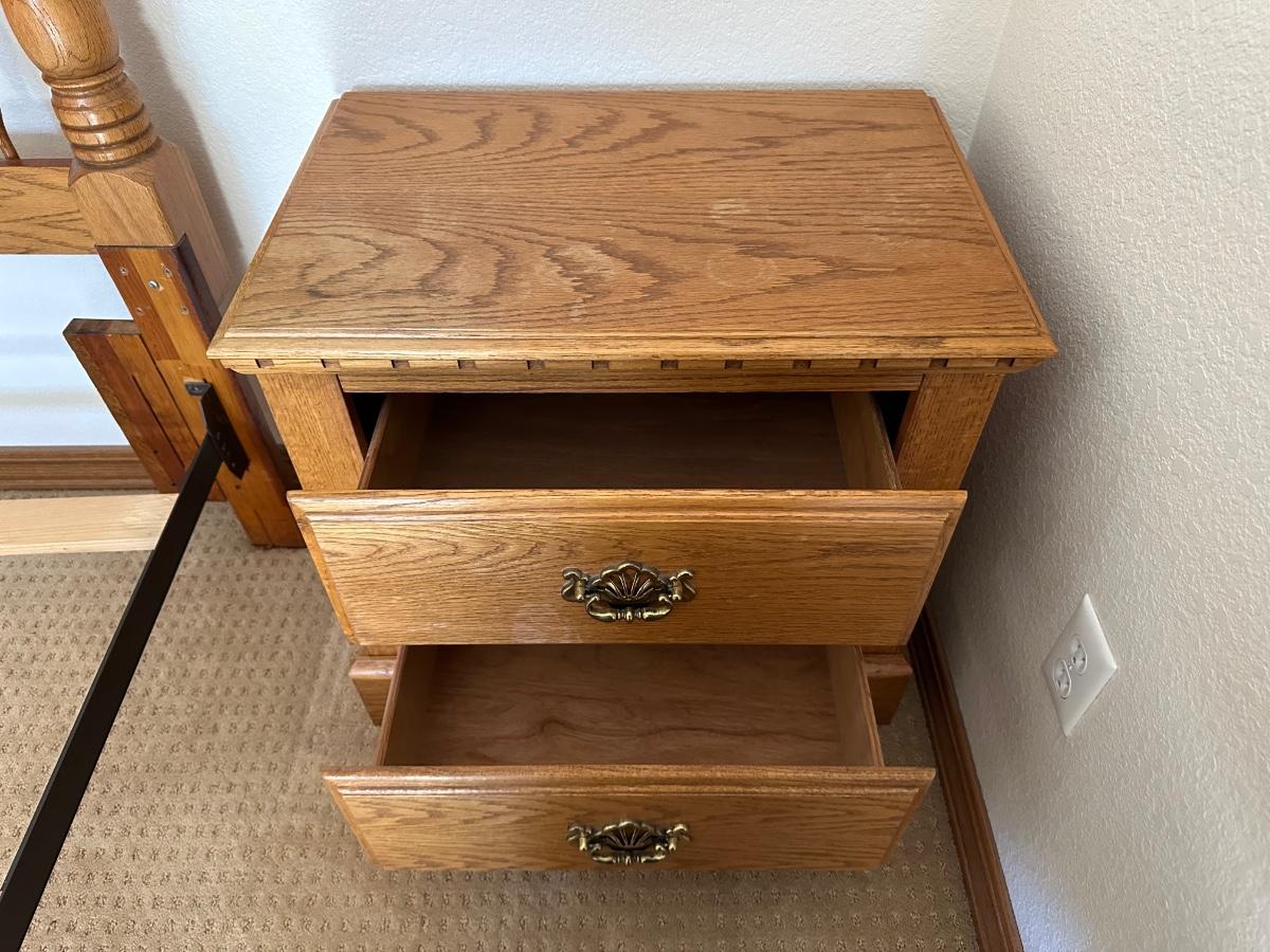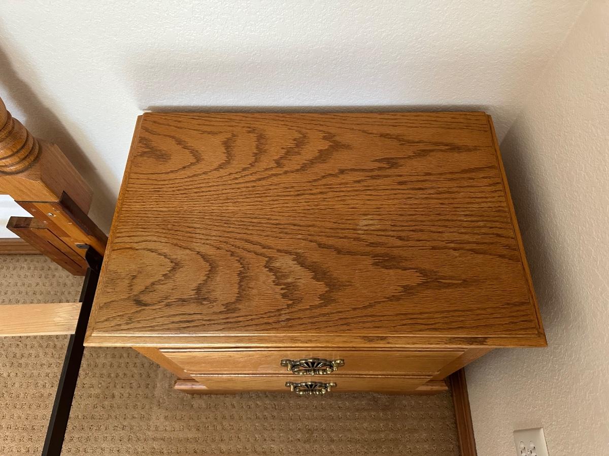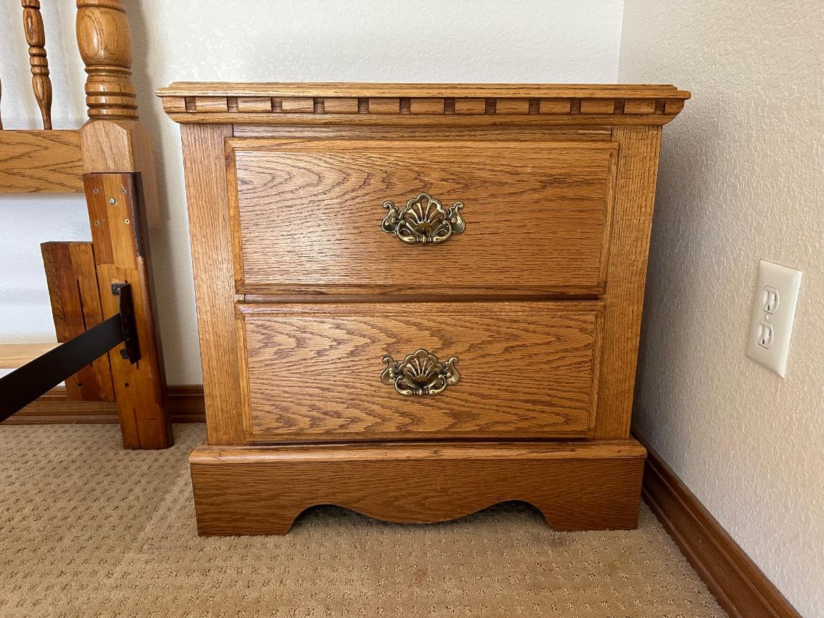 2 DRAWER NIGHT STAND AND A FRAMED PICTURE