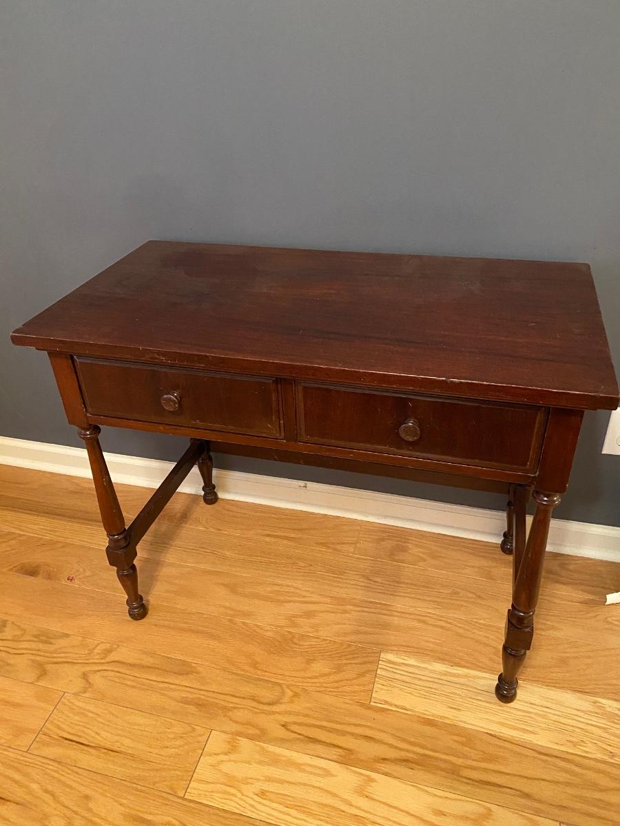 2 Drawer Dovetailed Writing Desk Some Damage on Top. 36x19x25