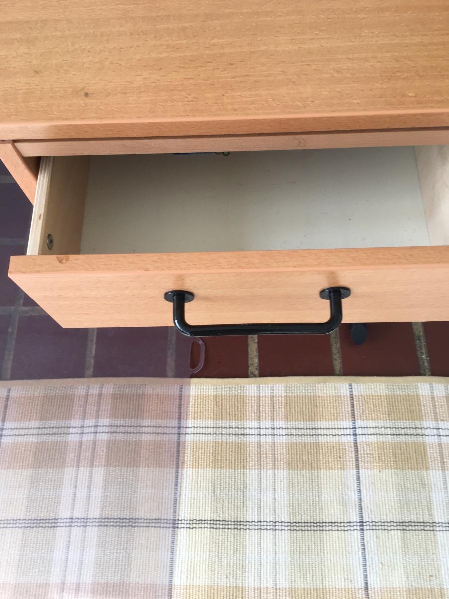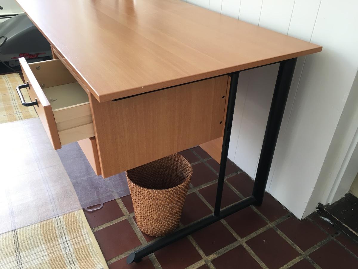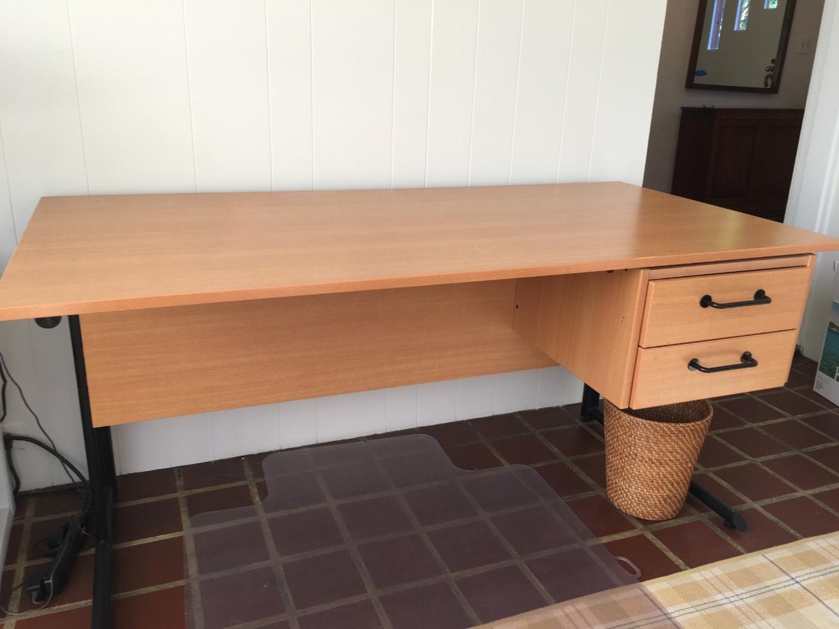 Large desk with two drawers. Offers plenty of room to work and lots of leg room. In like new condition.