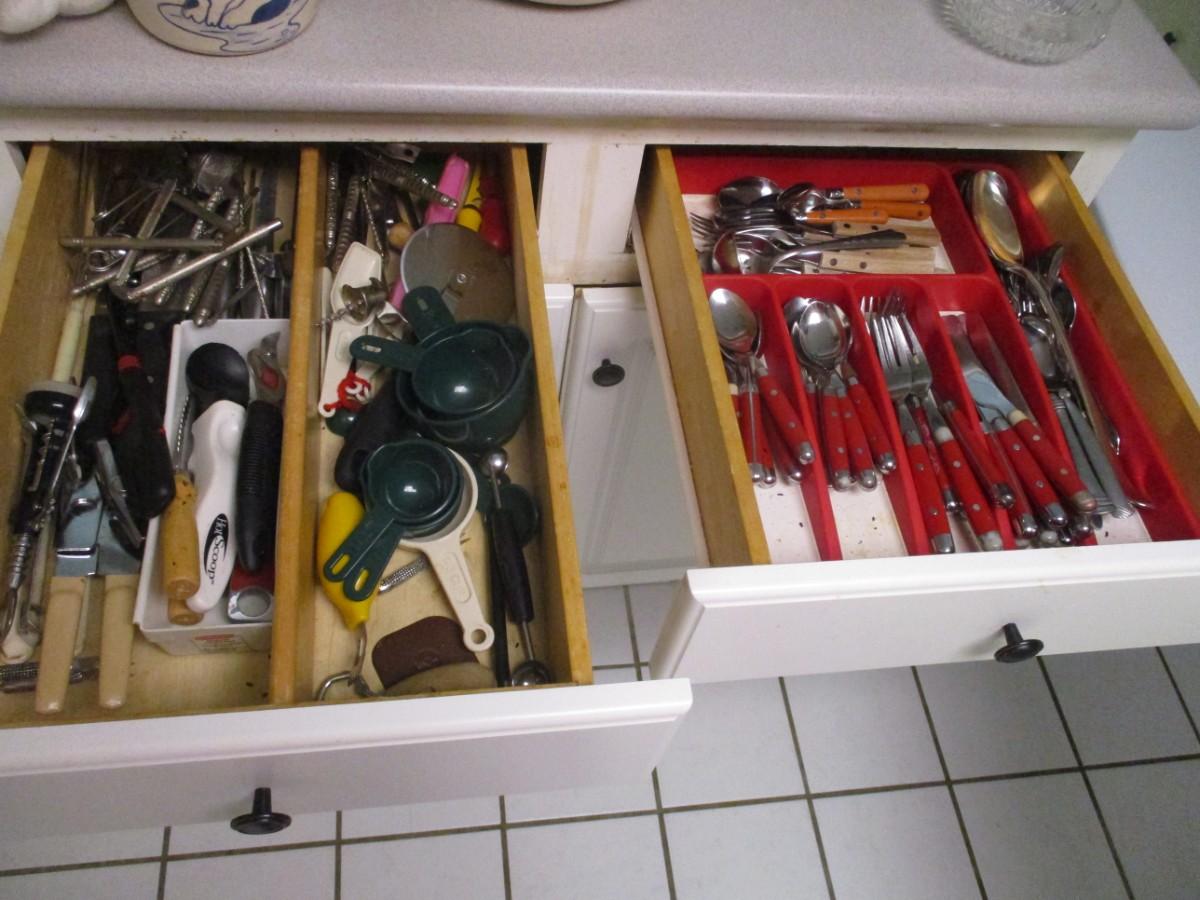 2 Drawers Of Kitchen Gadgets & Silverware (K)