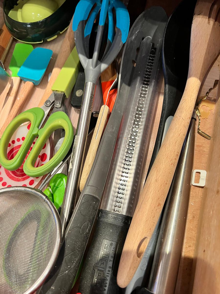 2 Drawers, silicon mini spatulas, graters, kitchen tools