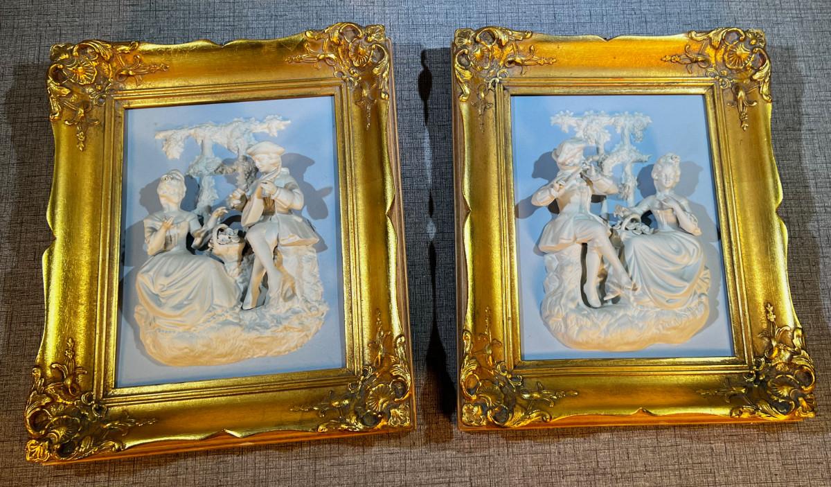 2 Dresden Wall Plaques, Scenes of Pastoral Days