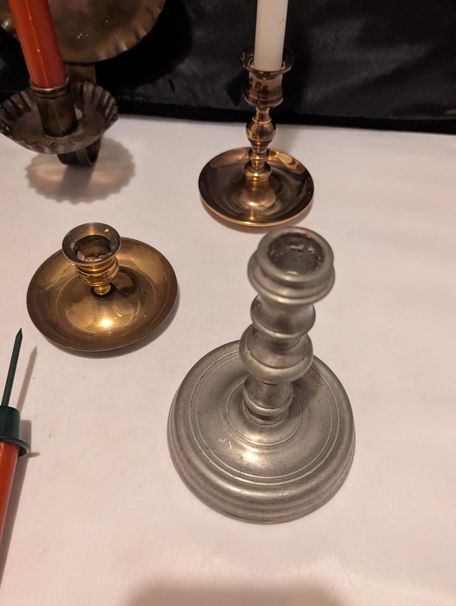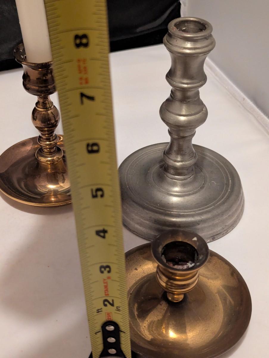 2 Early American Primitive Metal Tin Wall Sconces Farmhouse Candle Holders & Pewter & Brass