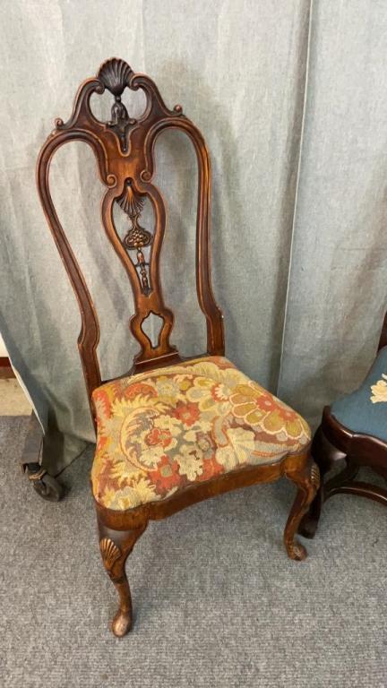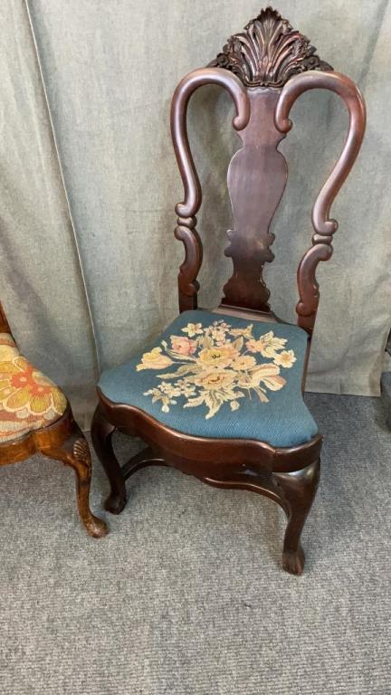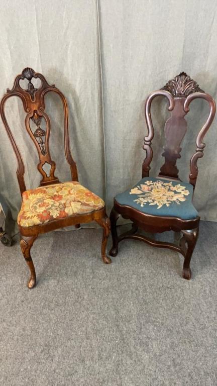 2 Early Chairs W Needlepoint Seats