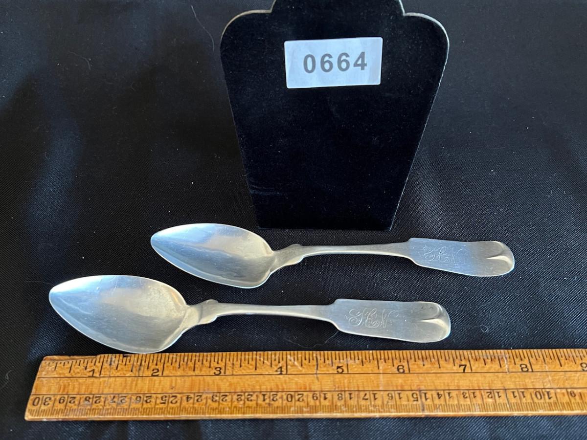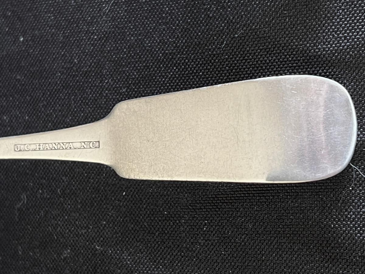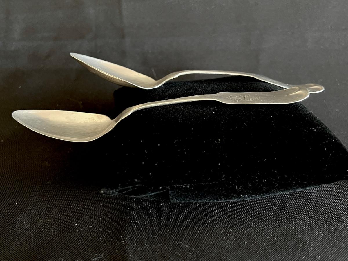 2 Early J C Hanna Antique Coin Silver Spoons with monograms - wonderfully made
