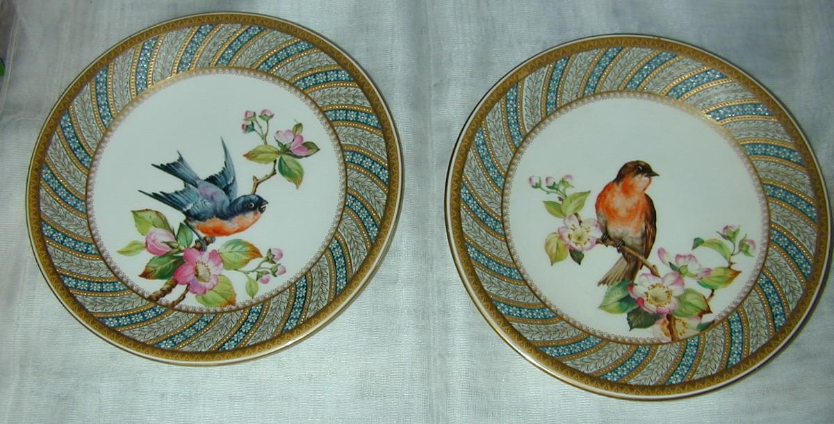 2 Early Royal Worcester Hand Painted Cabinet Plates Birds